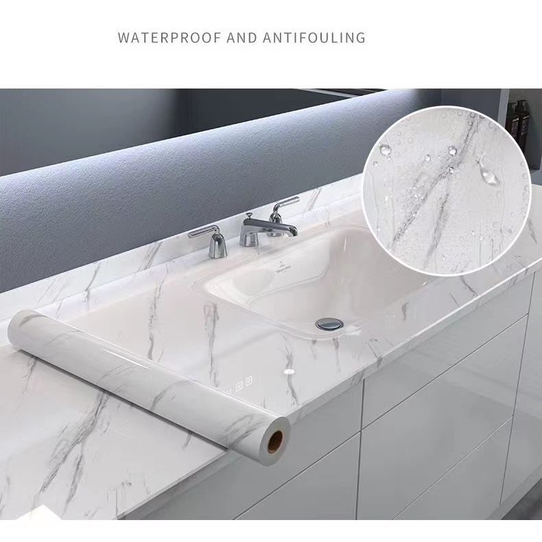 10M Kitchen Wall Stickers Oil-proof DIY Self Adhesive Wallpaper Bathroom Waterproof PVC Floor Stickers Cabinet Countertops Table Waterproof Sticker Marble Wallpaper