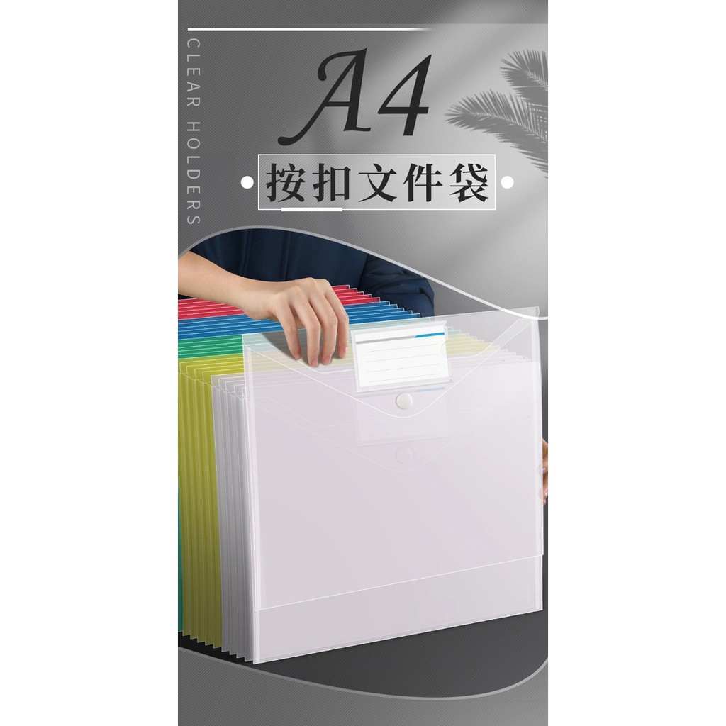 10PCS A4 Pocket File (with ID Label pocket) Stationery School Office Case PP Document Bag Button File