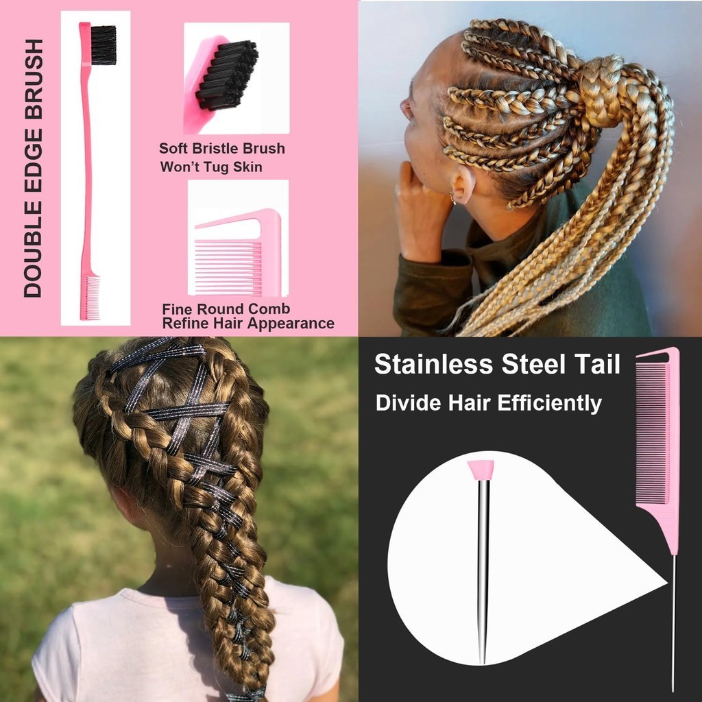 10PCS Hair Brush Set,Hair Styling Comb Including Dual Sided Edge Brush & Rat Tail Comb and Teasing Comb for Women Girl Stylists Styling tools