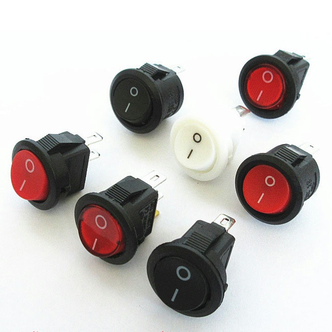 10PCS ON/OFF Round Rocker Toggle Switch 3A/250VAC 15MM ON-OFF Plastic Push Button Switch 2 Postion/2 Pin Red Black White