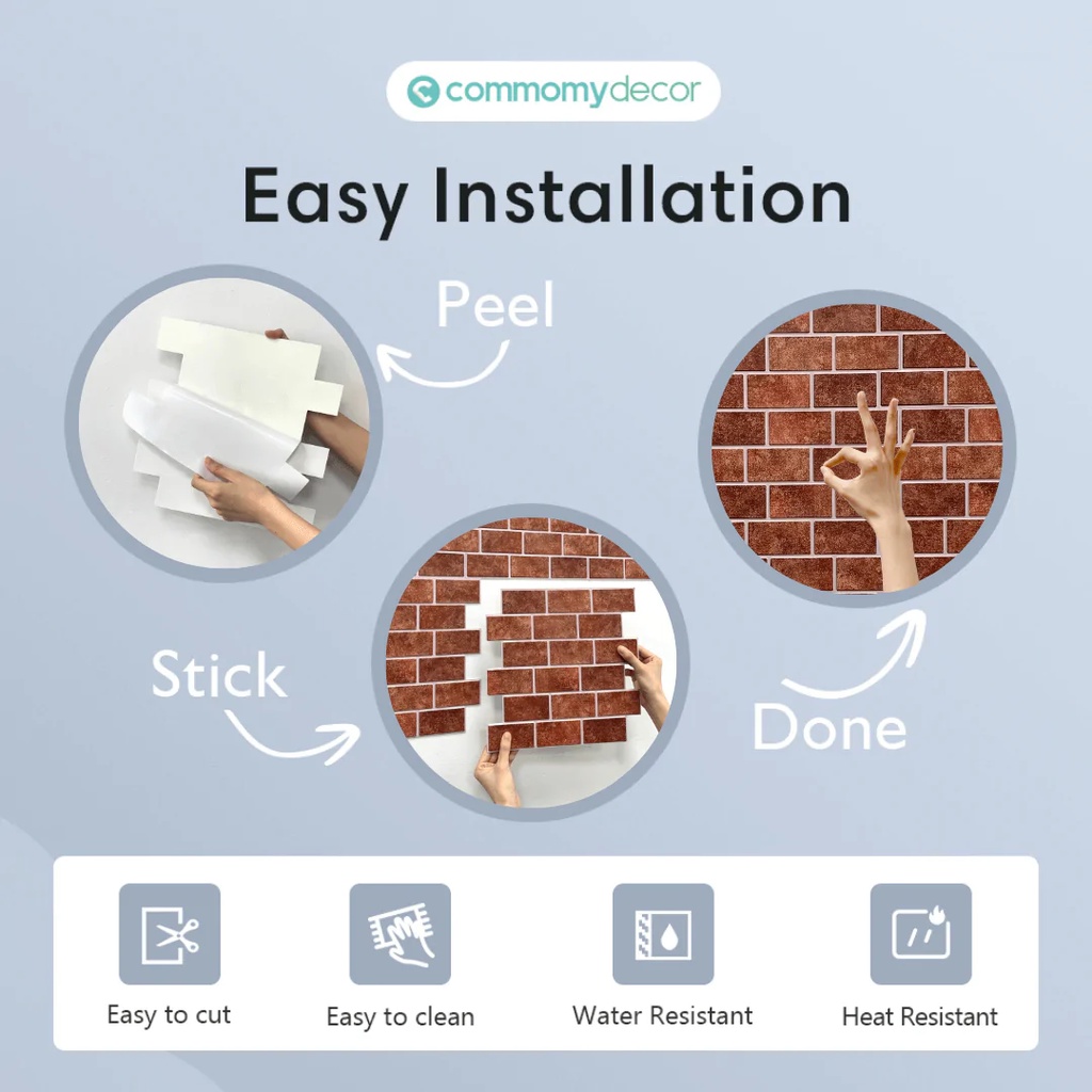 10Pcs | 3D Brick Wall Tile Sticker Self Adhesive 3D Wall Panel Brick Wallpaper, DIY Wall Sticker for Kitchen, Living Room, Bedroom, Bathroom Interior Home Wall Decor 30*30cm