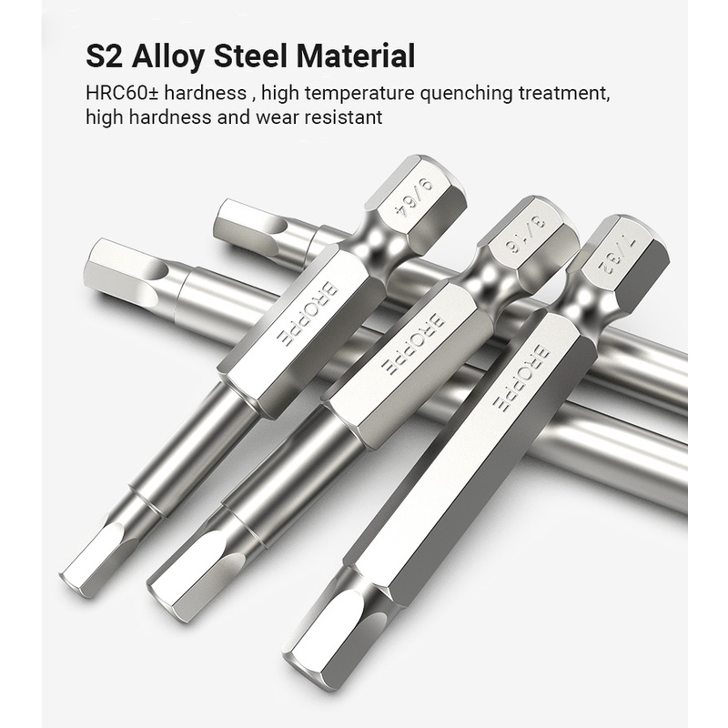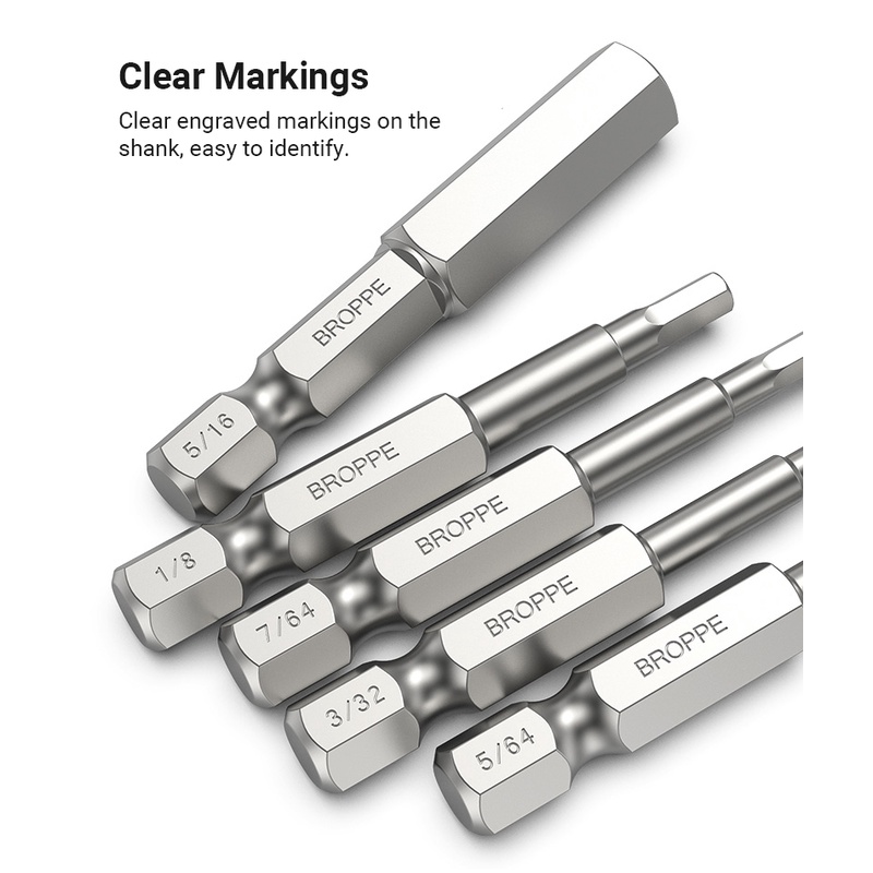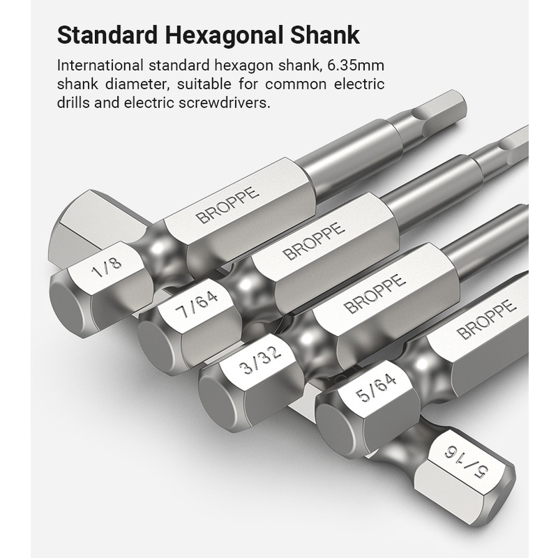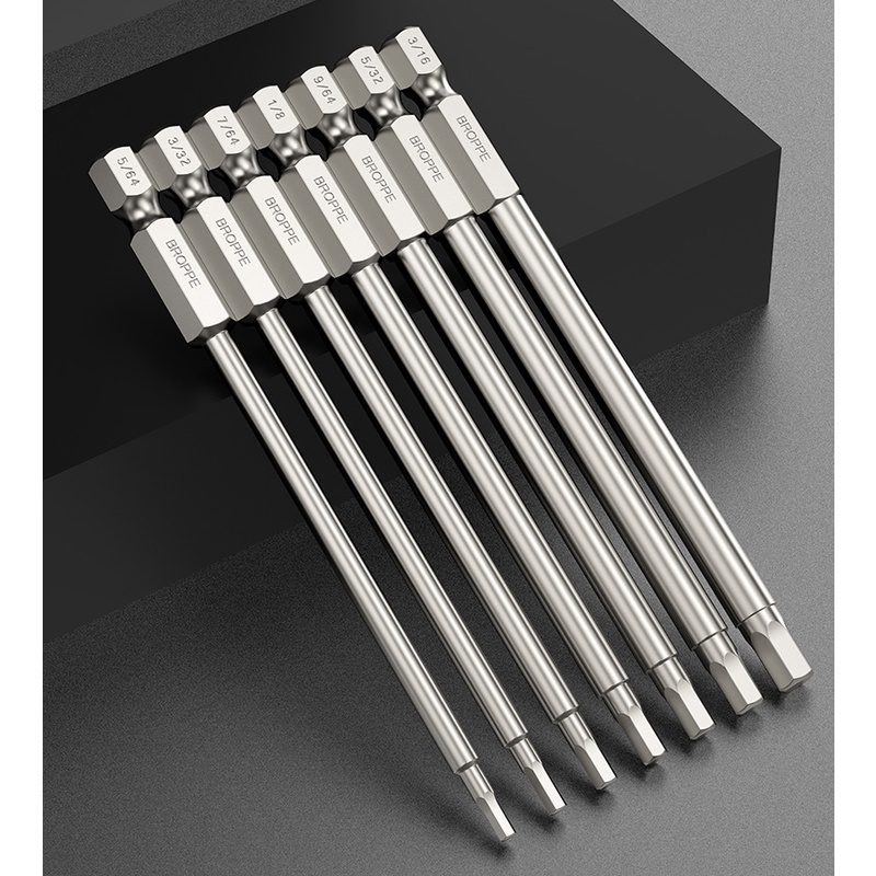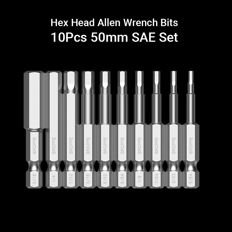 10Pcs Hex Head SAE Allen Wrench Screwdriver Bits 5/64 - 5/16 S2 Steel Hex Socket Key 1/4" Hex Shank Quick Release Magnetic Screw Driver Bit Set 50mm 100mm allen key set