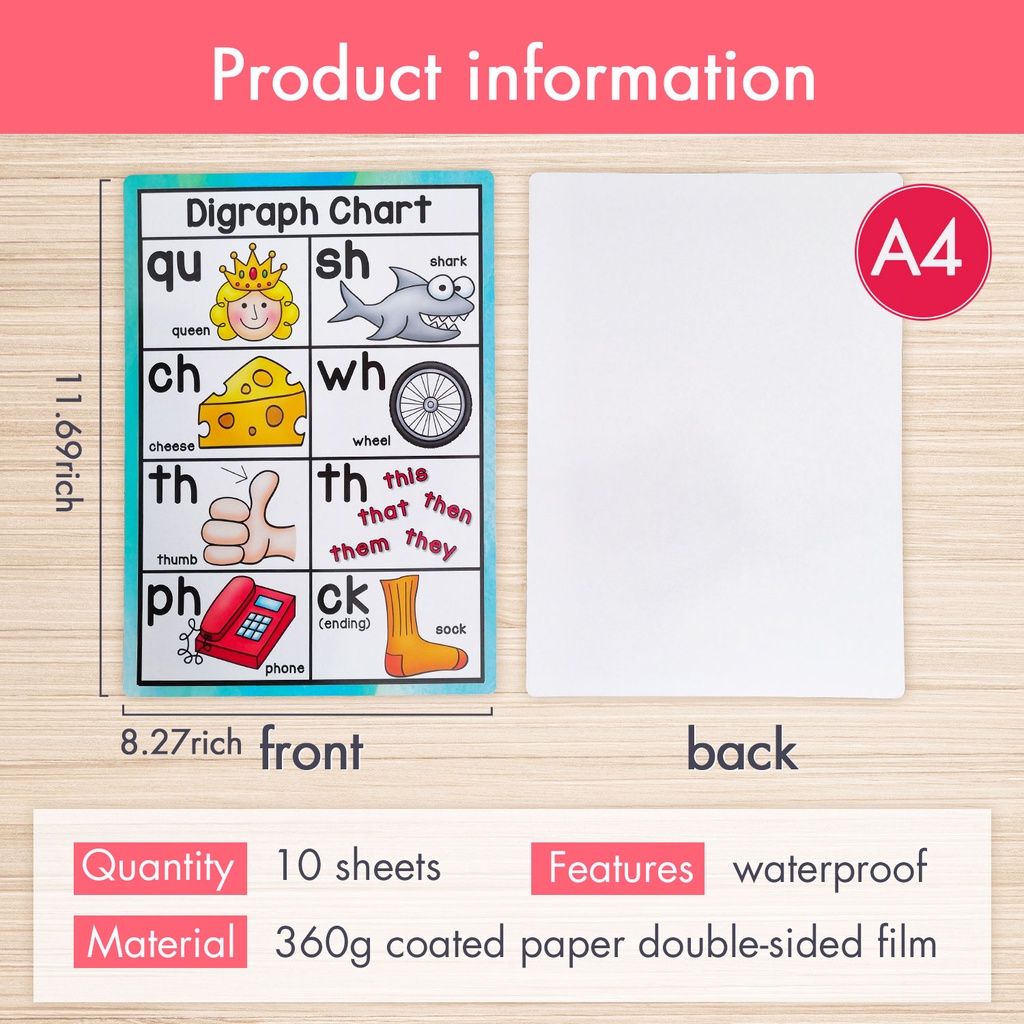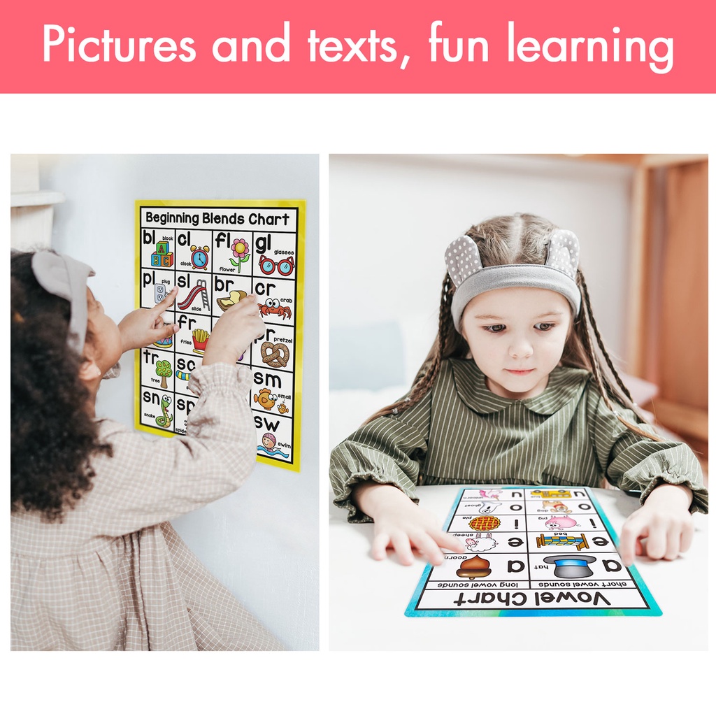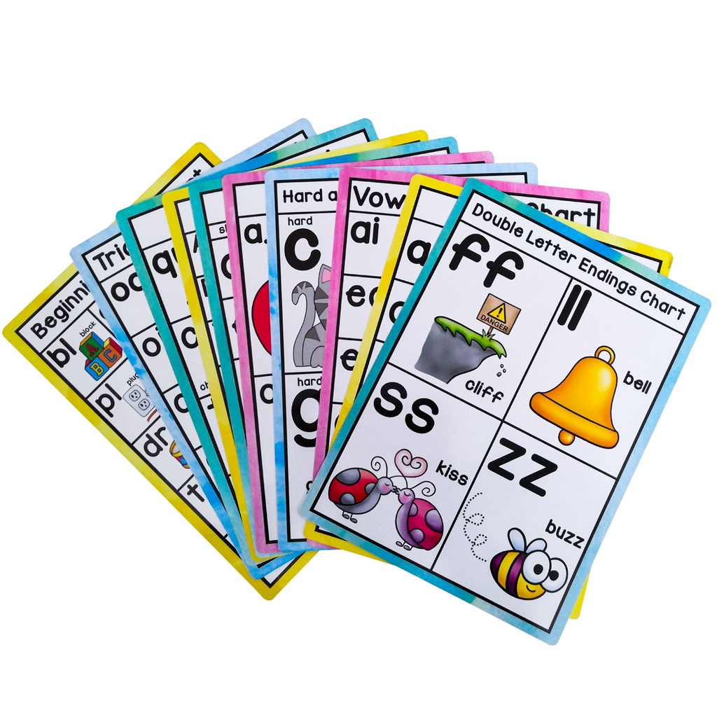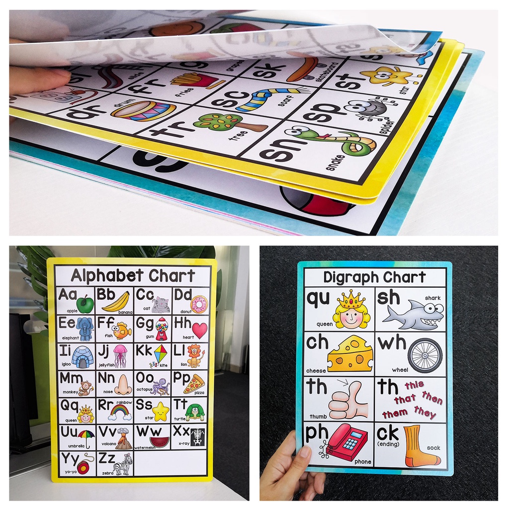 10Pcs/set English Phonics Posters A4 Card Alphabet Word Card
