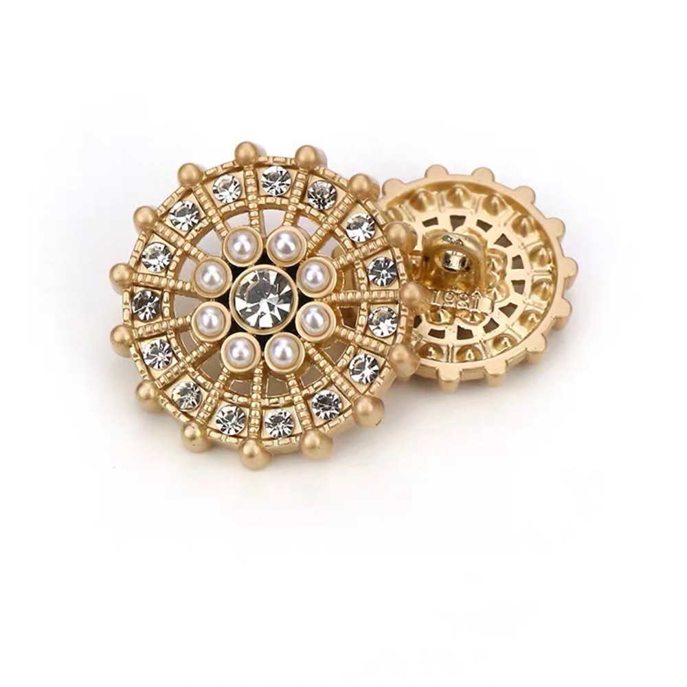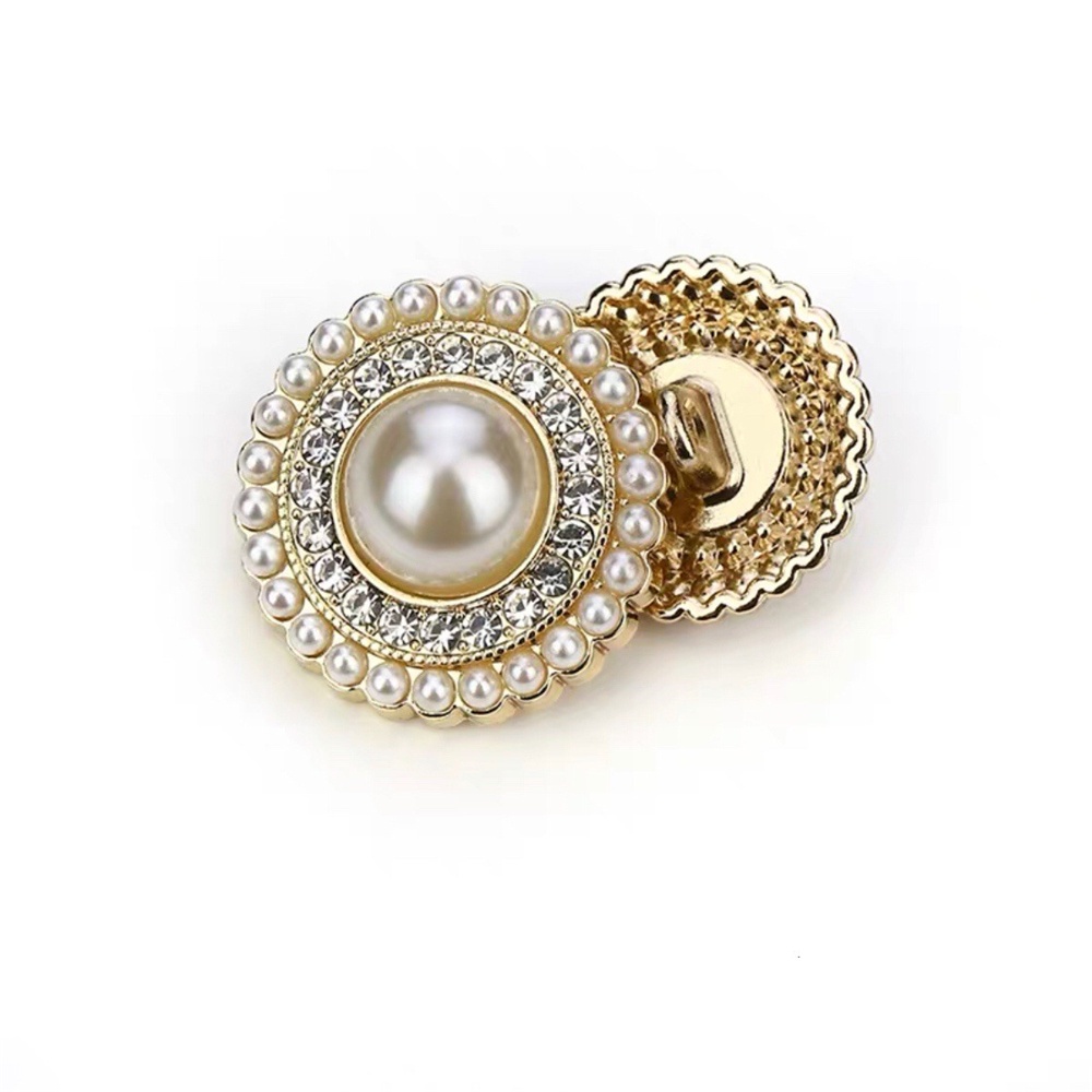 10Pieces/lot Super Luxury Golden Rhinestone Buttons for Sewing and Needlework Large Pearl Buttons for Clothing Women DIY Blouse Buttons 18mm
