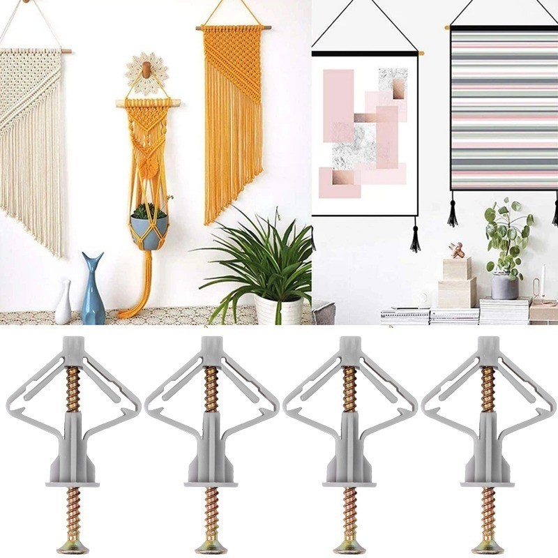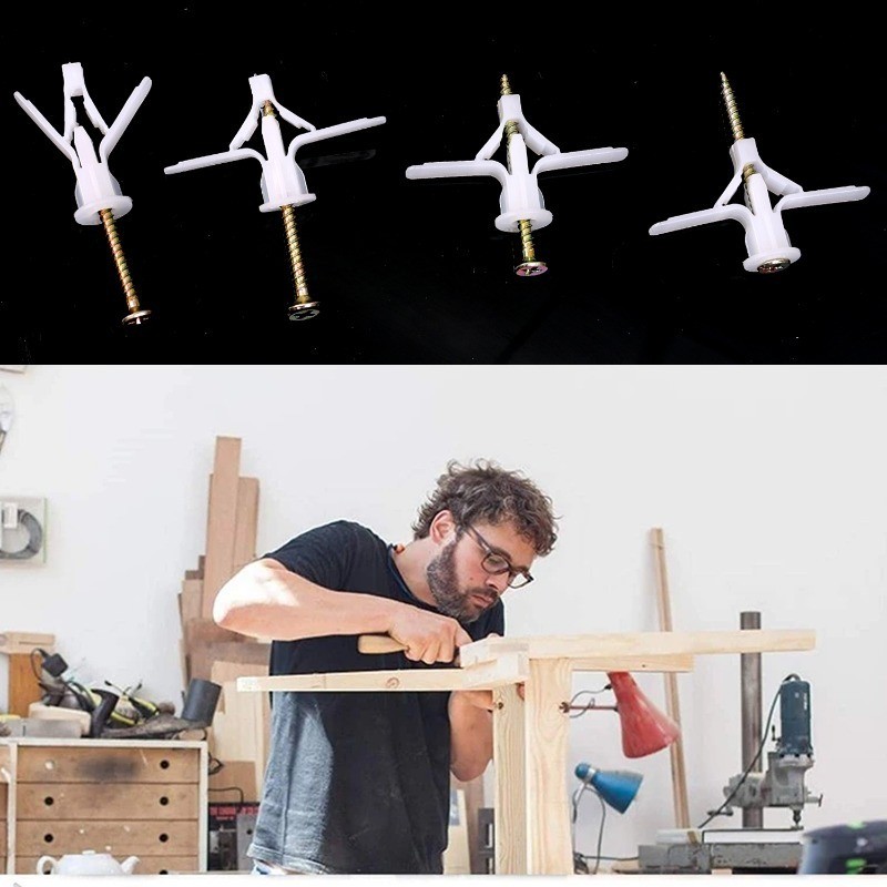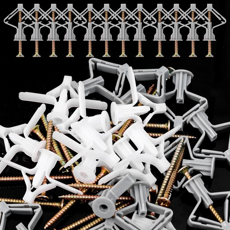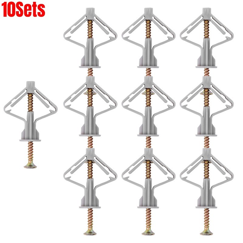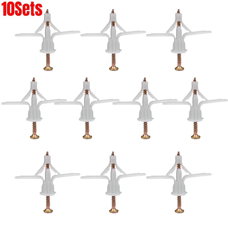 10Sets Plasterboard Drywall Fixing Anchor Kit Stable Nylon Self Tapping Expansion Screws Airplane/Butterfly Shaped Wall Hardware Accessories