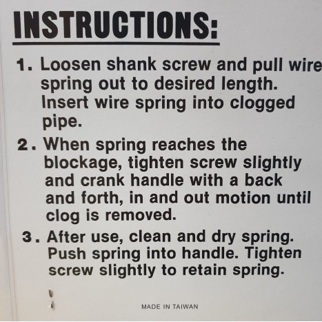 10ft Pipe Cleaner Made in Taiwan Use in Wash Basin Kitchen Sink Laundry Shower Drain Pipes Clear Blockage Clogged Drain