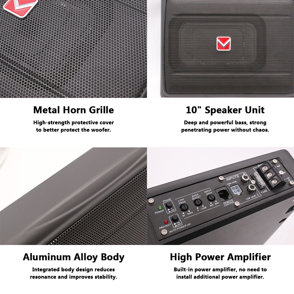 10inches bluetooth Car Amplifier 800W Subwoofer Car Audio Slim Under Seat Active Subwoofer Bass Speaker Auto Woofer Music Player
