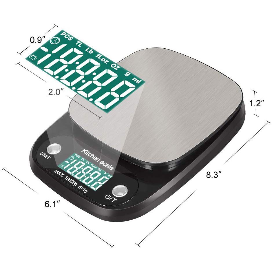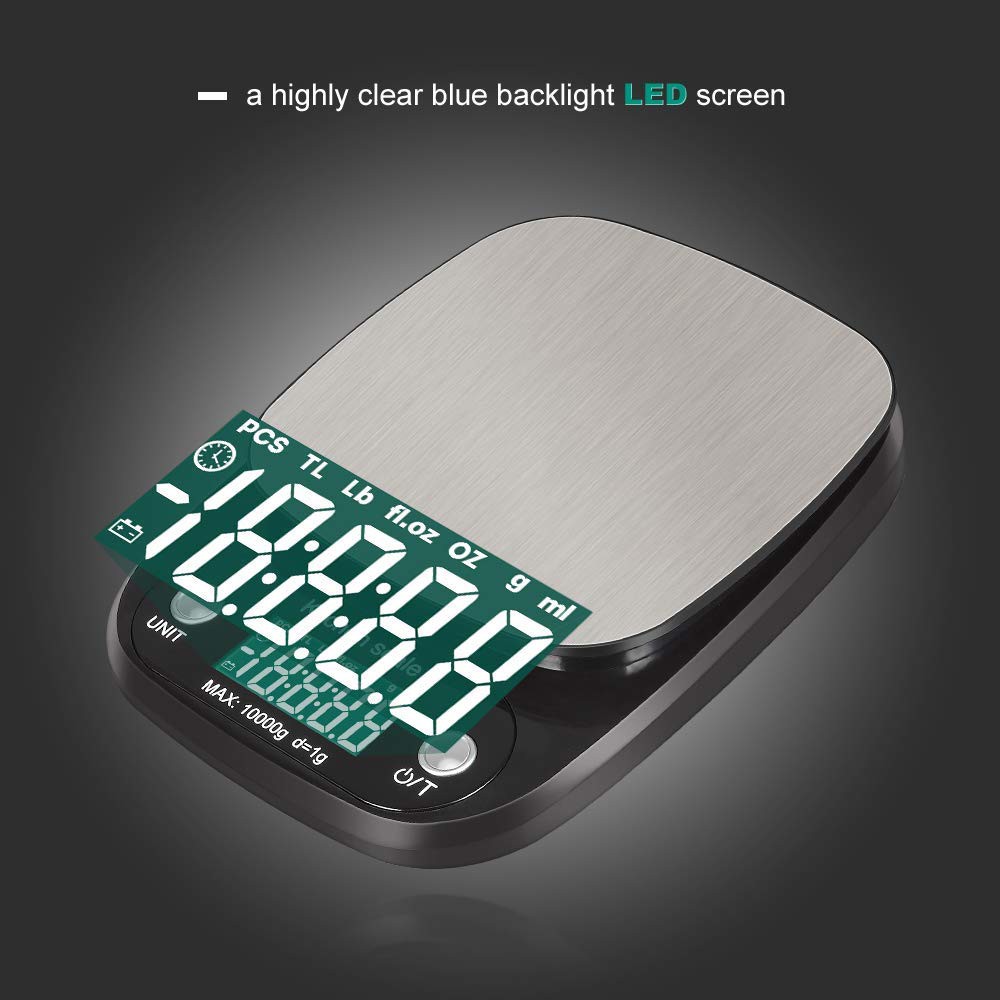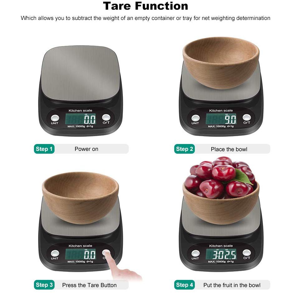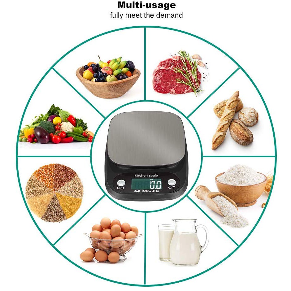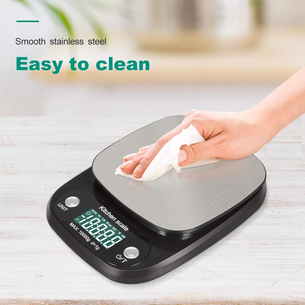 10kg/1g Digital Kitchen Scale Stainless Steel Food Weighing Scale Baking Cooking LCD Display