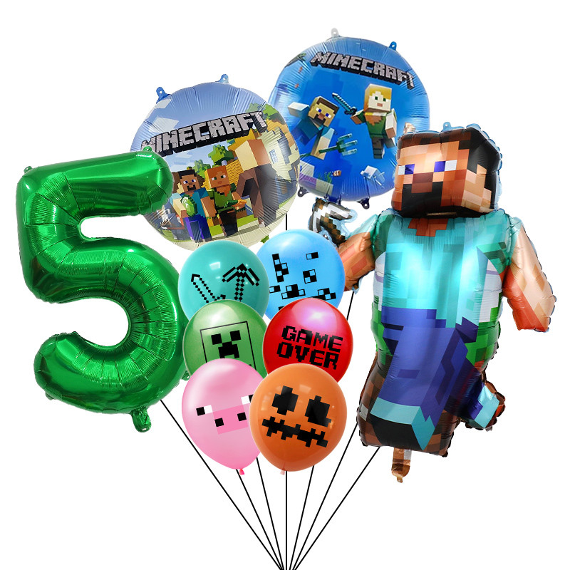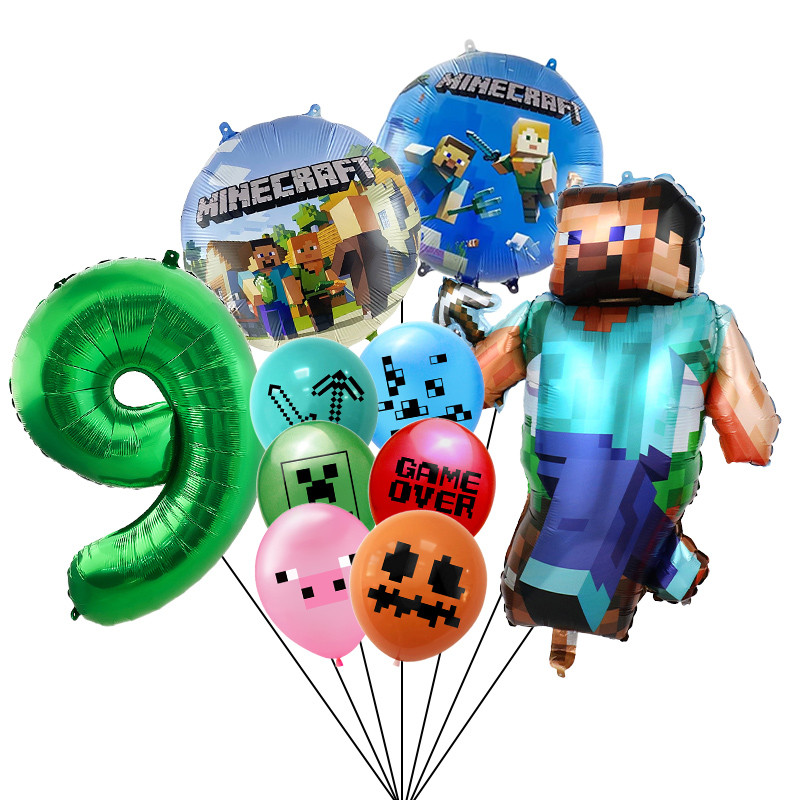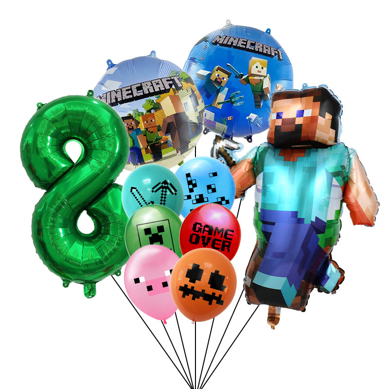 10pc / Set Minecraft Aluminum Foil No. Balloon Set Party Decoration