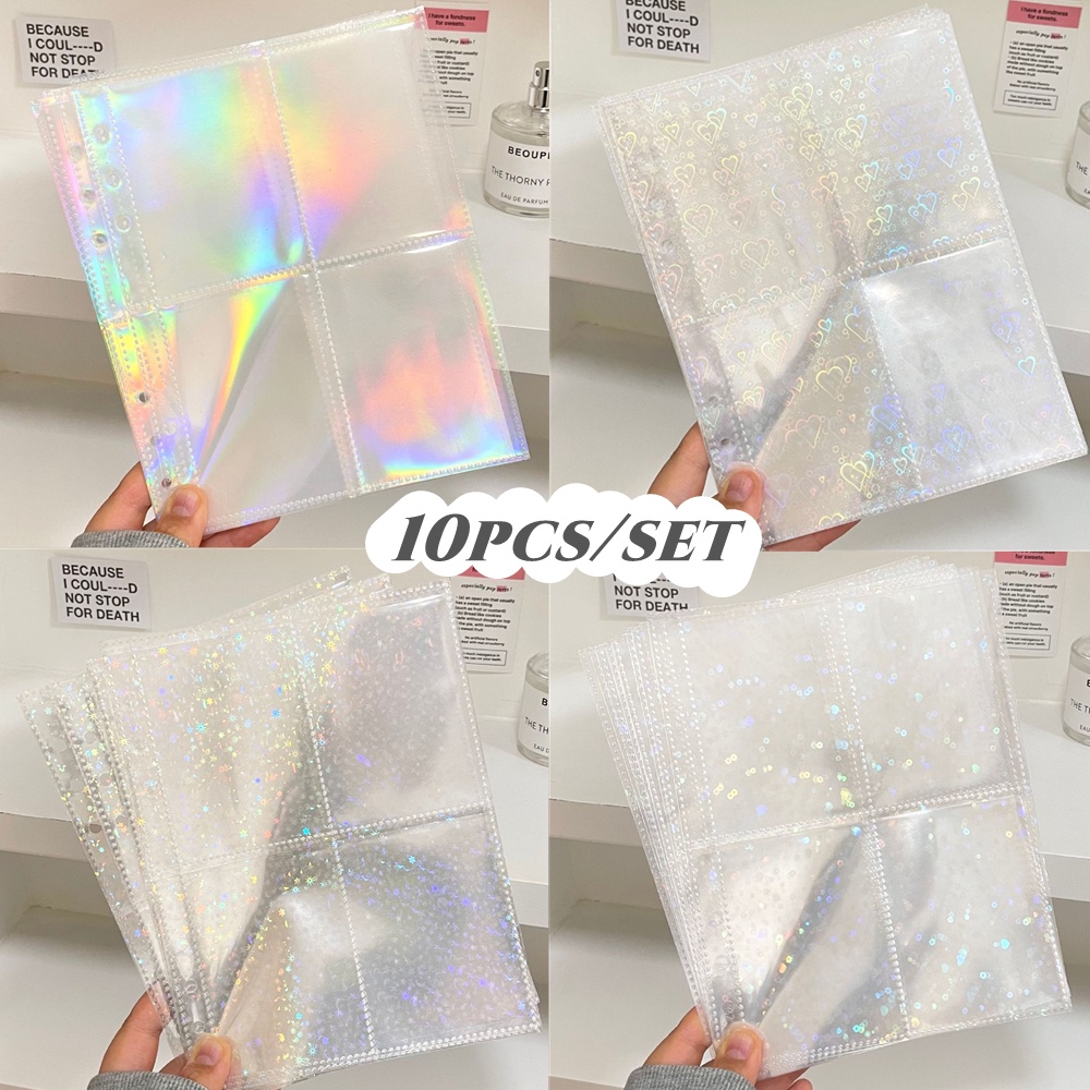 10pcs A5 Laser Sleeves Universal PP Inner Page Heart/Flower/Star/Rainbow Pattern Photocard Sleeves Binder Album Refill Pages idol Card Collection Storage