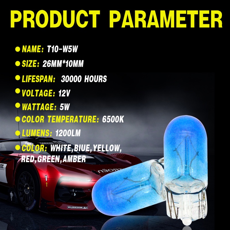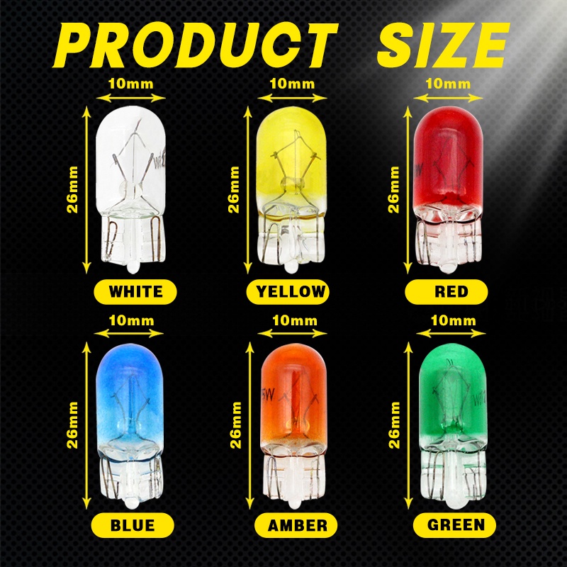 10pcs Car Lights T5 T10 T15 1156 1157 Halogen Bulb Clear Blue Yellow Red Green Amber Color Glass Car Tail Bulb Auto Indicator Lamp Reversing Light