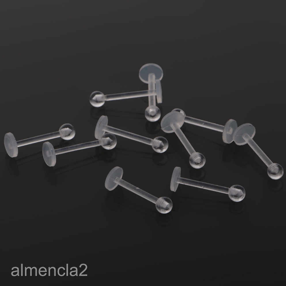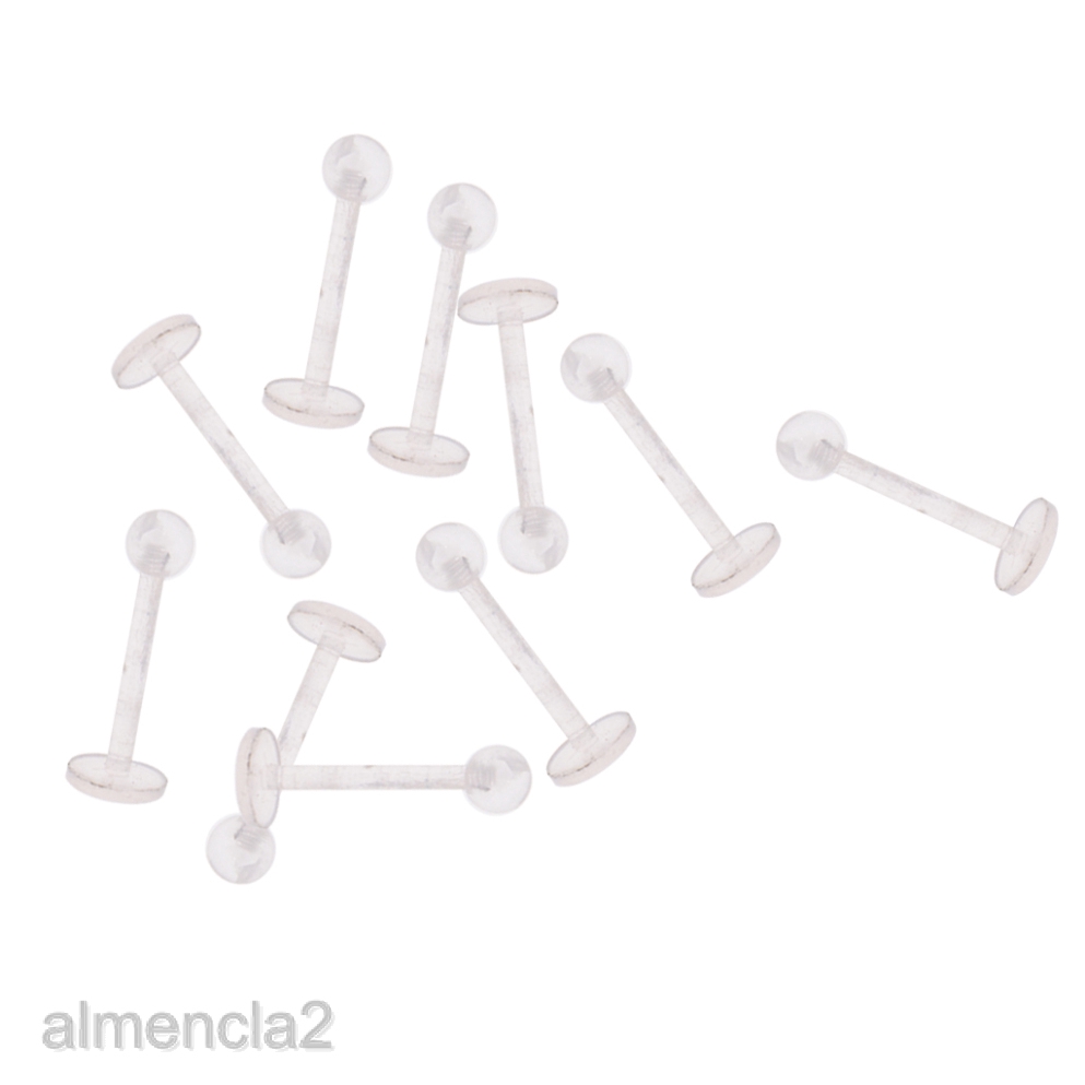 10pcs Clear Acrylic Labret Cheek Piercing Retainer 18g(1mm) No Metal