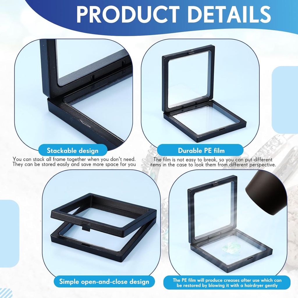 10pcs Floating Frame Display Stand Transparent Plastic 3D Floating Frame Clear PE Film Jewelry Box Coin Display Case for Medallion Shell