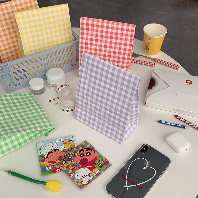 10pcs Ins Korean Style Color Plaid Kraft Paper Bag Gift Packaging Small Gift Paper Bag Cute Storage Organizing Bag