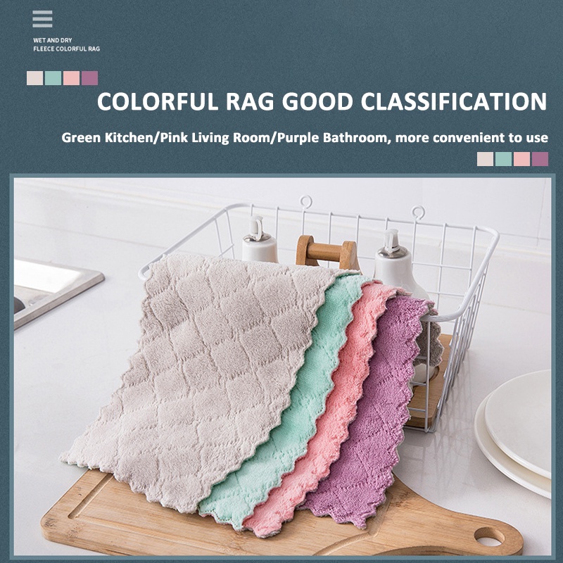10pcs Kitchen Microfiber Cleaning Cloth Absorbent Dish Wipes Towel Double Sided Rag 25CM X 25CM