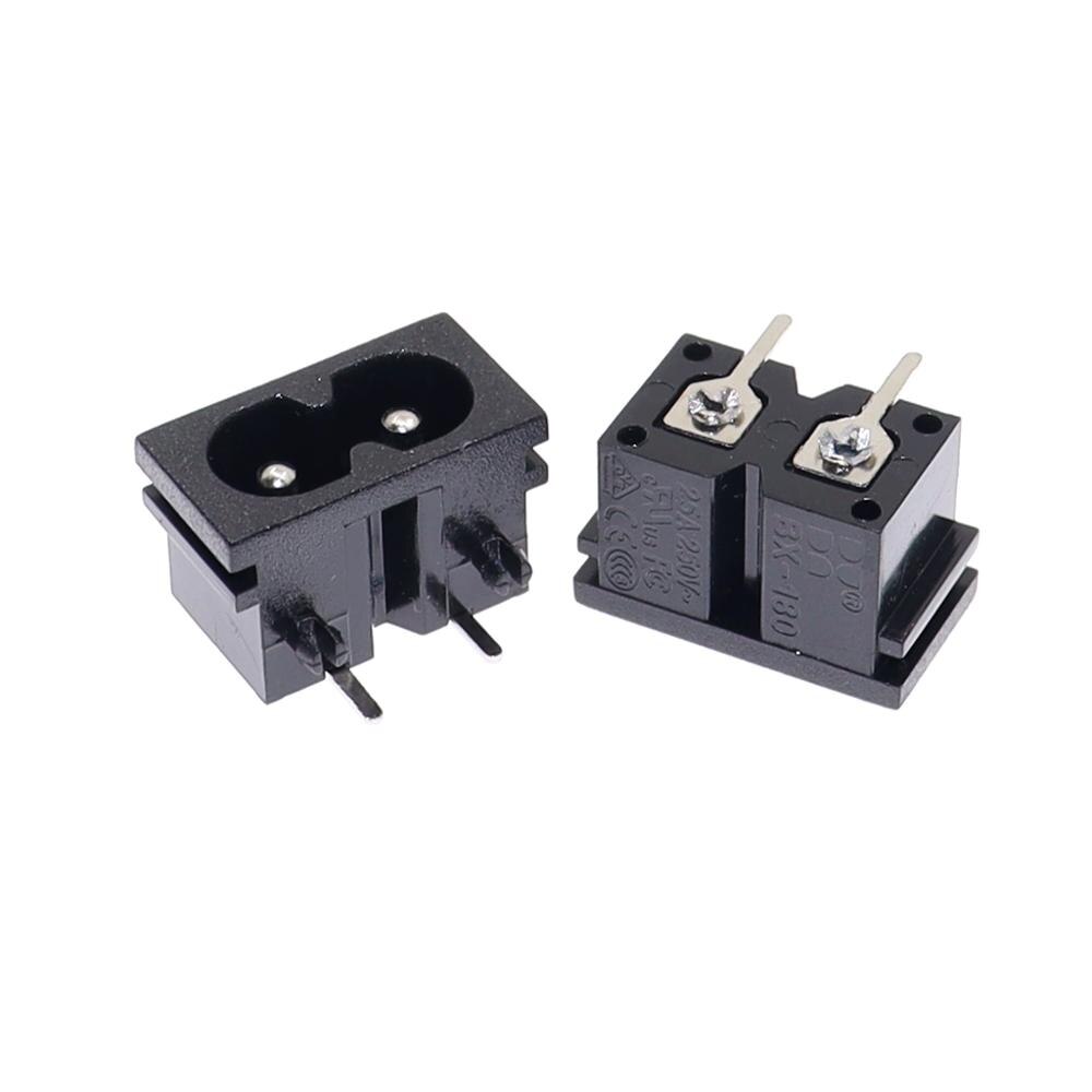 10pcs/lot IEC 60320 C8 AC Power Socket inlet split panel and 2 pin PCB Mount