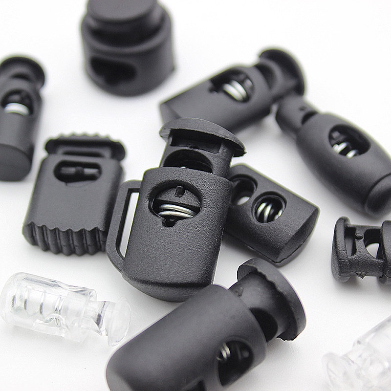 10pcs/pack Spring Rope Cord Lock Toggle Clip Stopper Plastic Black White Transparent For Bags/Garments/Shoes
