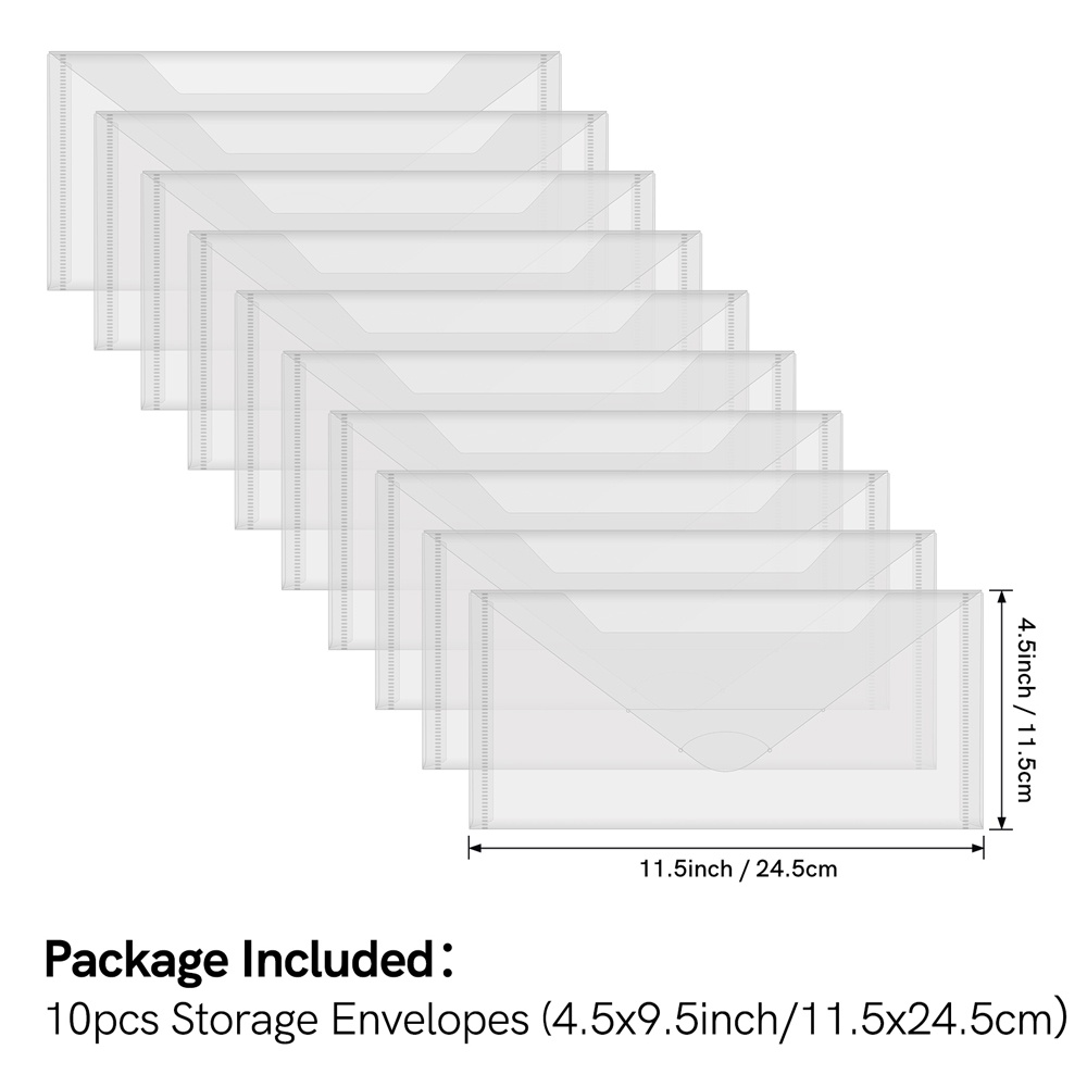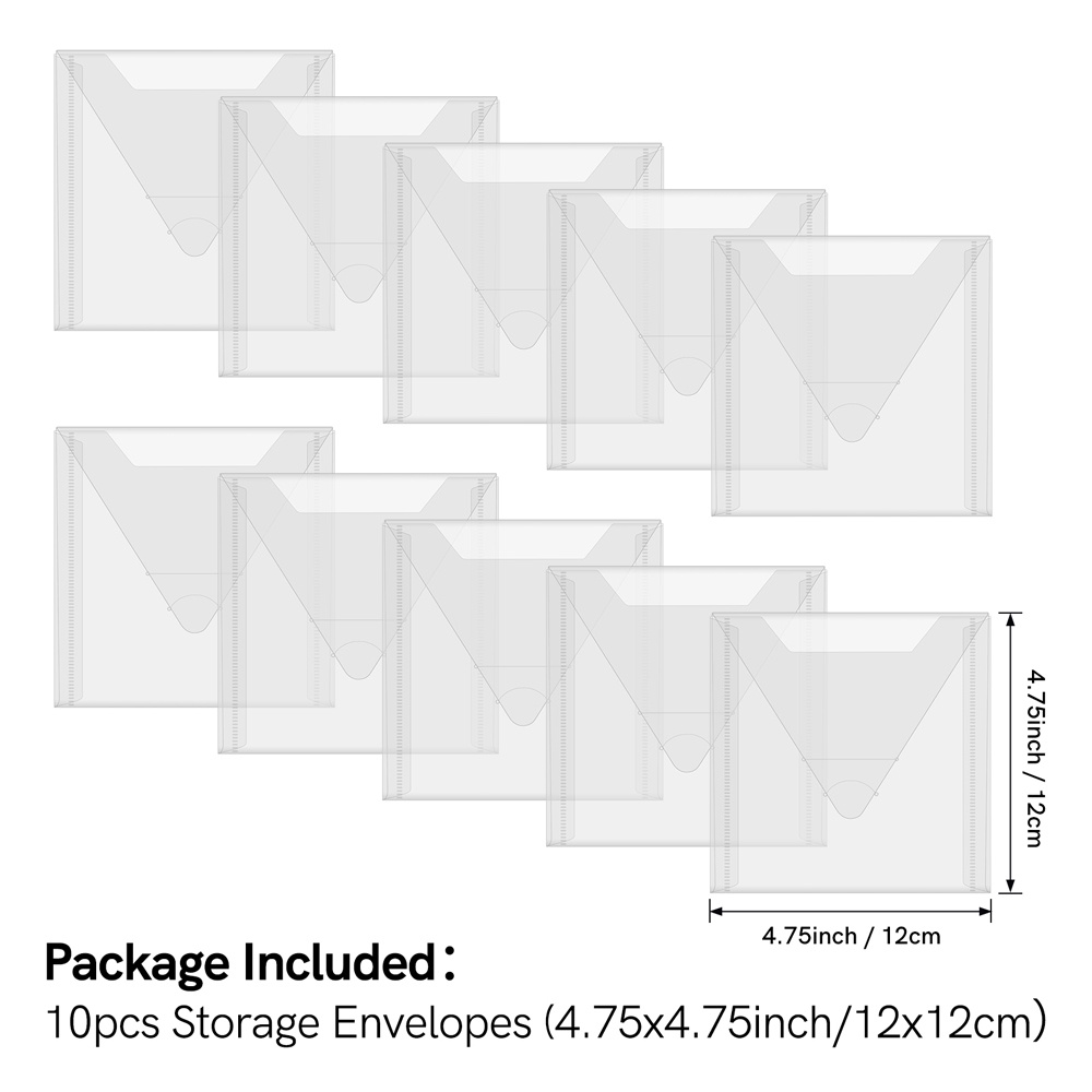 10pcs/set Multiple Size Plastic Storage Envelopes with Colorful Label Stickers Reusable Clear Organizer to Organize Craft Supplies Including A2 Cards ,Cutting dies Clear Stamp etc