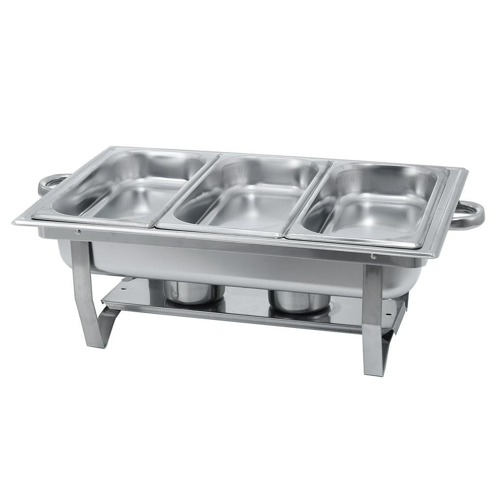 11L 3 Plates Foldable Stainless Steel Square Buffet Stove Dish Set Container Food Warmer Chafing Dish Full Buffet