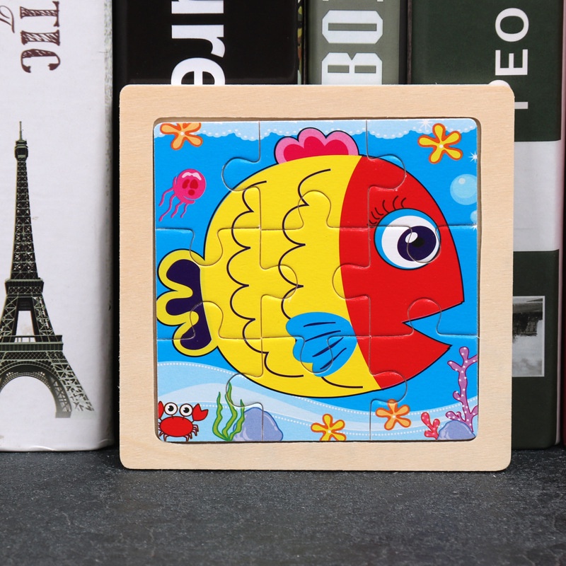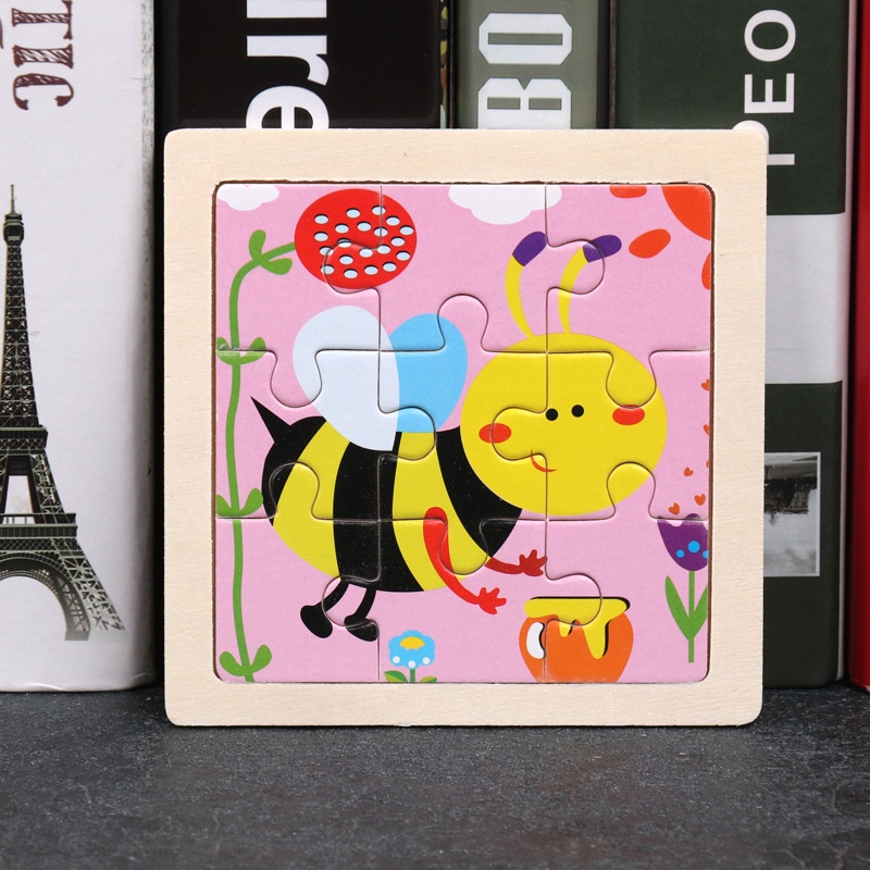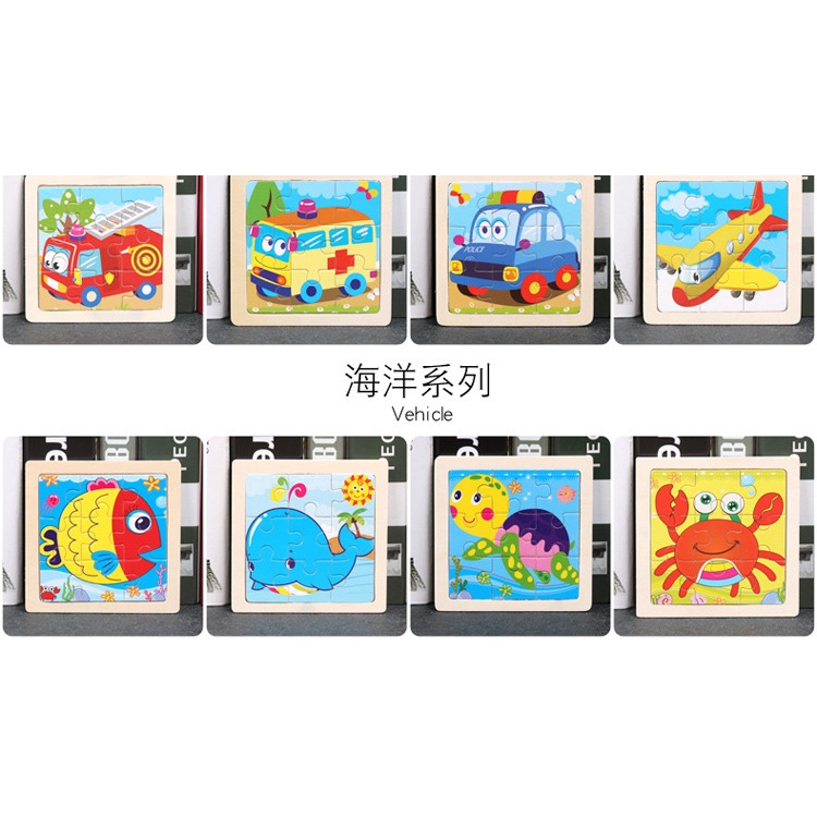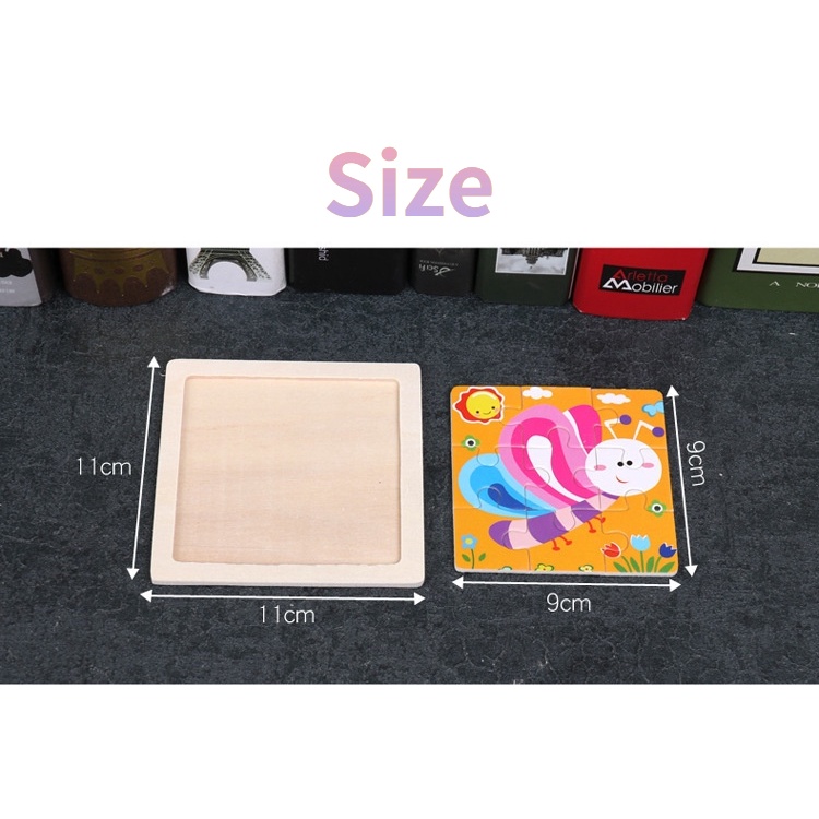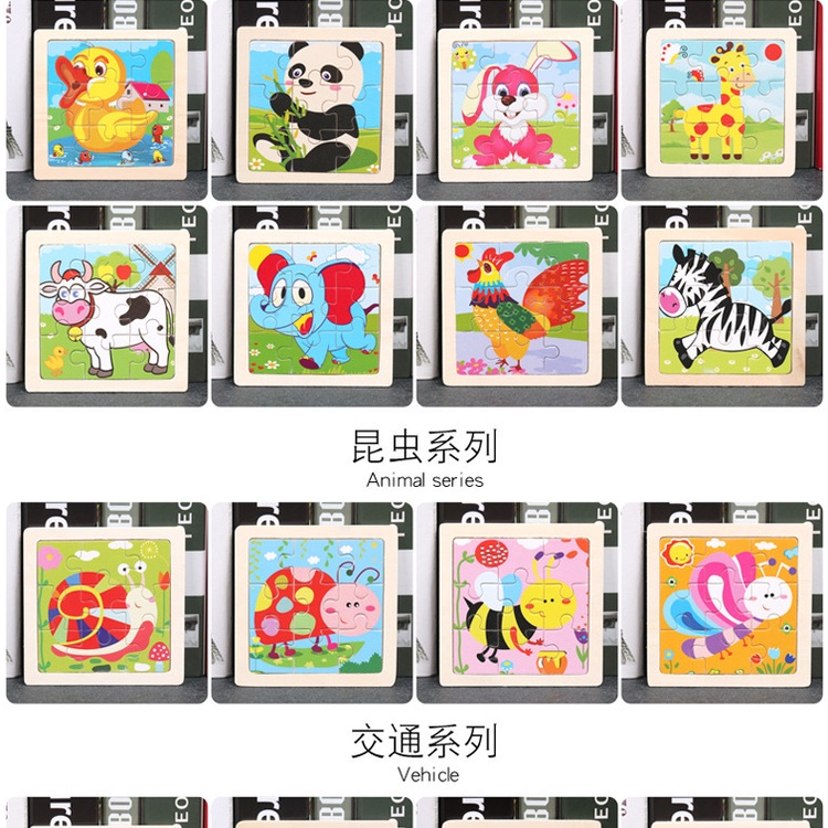 11X11cm Baby Wooden Jigsaw Puzzle Toy Animal Insect Vehicle Cartoon Early Educational Puzzles for Kids Gifts Montessori Learning Toys