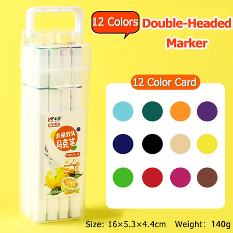 12/18/24/36/48 Colors Markers Set Washable Double-Headed Marker Safe Art Supplies Highlighter Pen School Stationery for Children