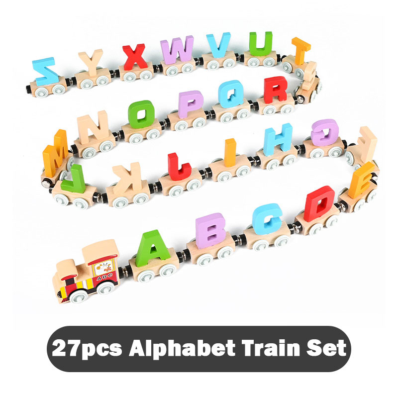 12/27pcs Magnetic Wooden Alphabet Number Train Set