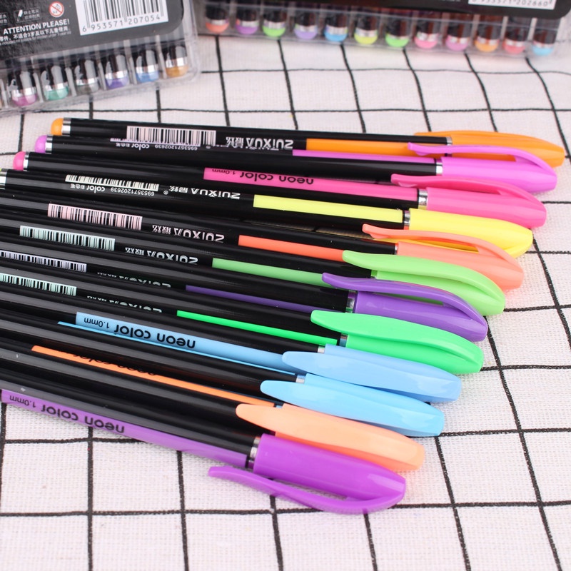 12-48pcs Colors Glitter Sketch Drawing Color Markers Gel Pens Set Refill Pastel Neon Marker School supplies Stationery