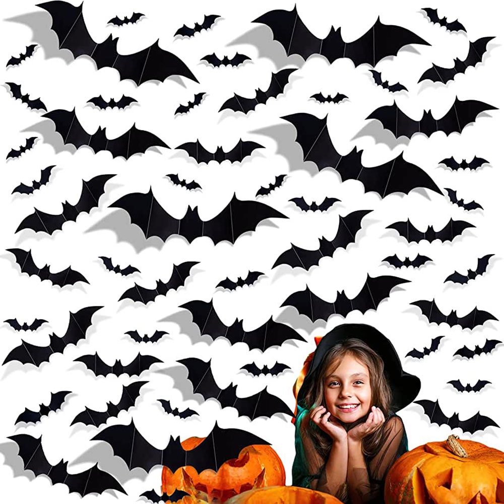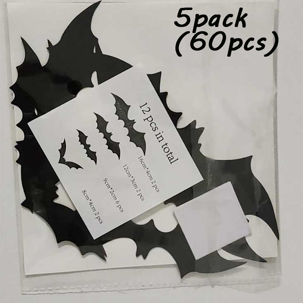 12/60pcs Halloween Decoration 3D Black Bat Stickers Halloween Party DIY Decor Bar Room Halloween Party Scary Props Wall Sticker
