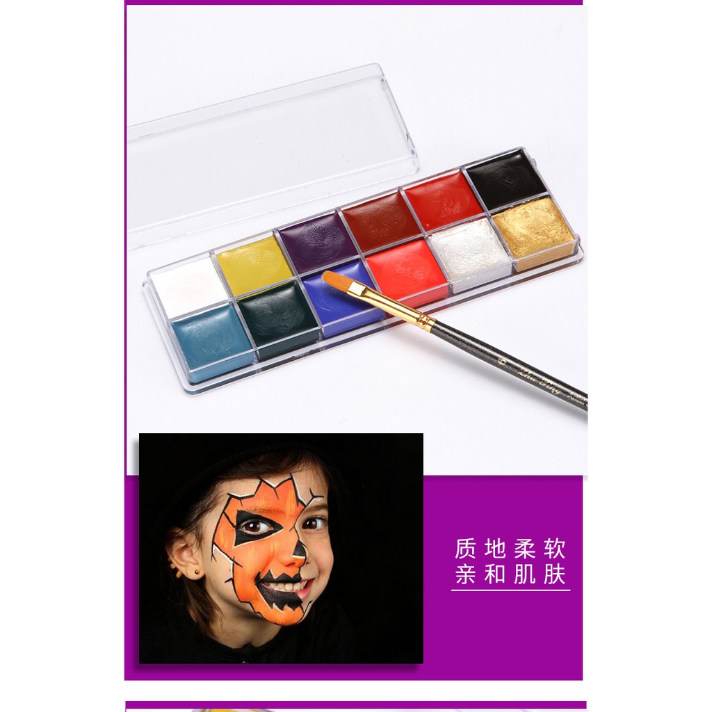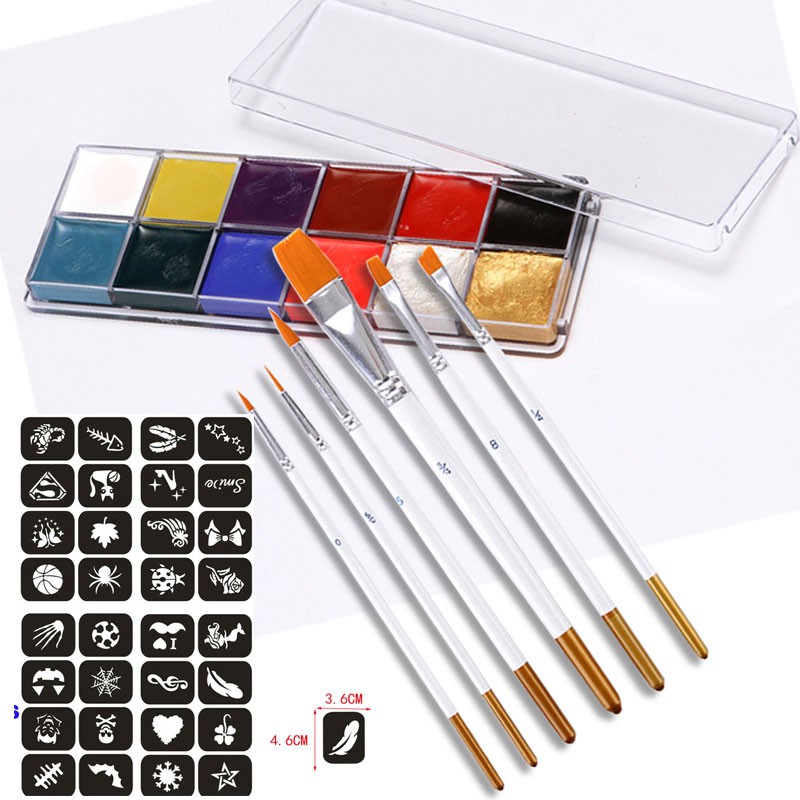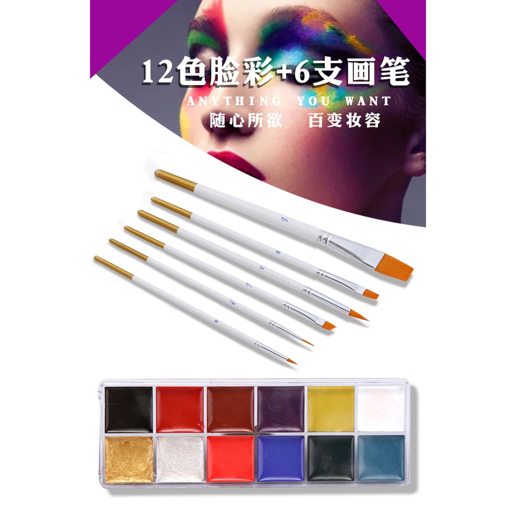 12 Colors Face Body Paint Set with Painting Brush