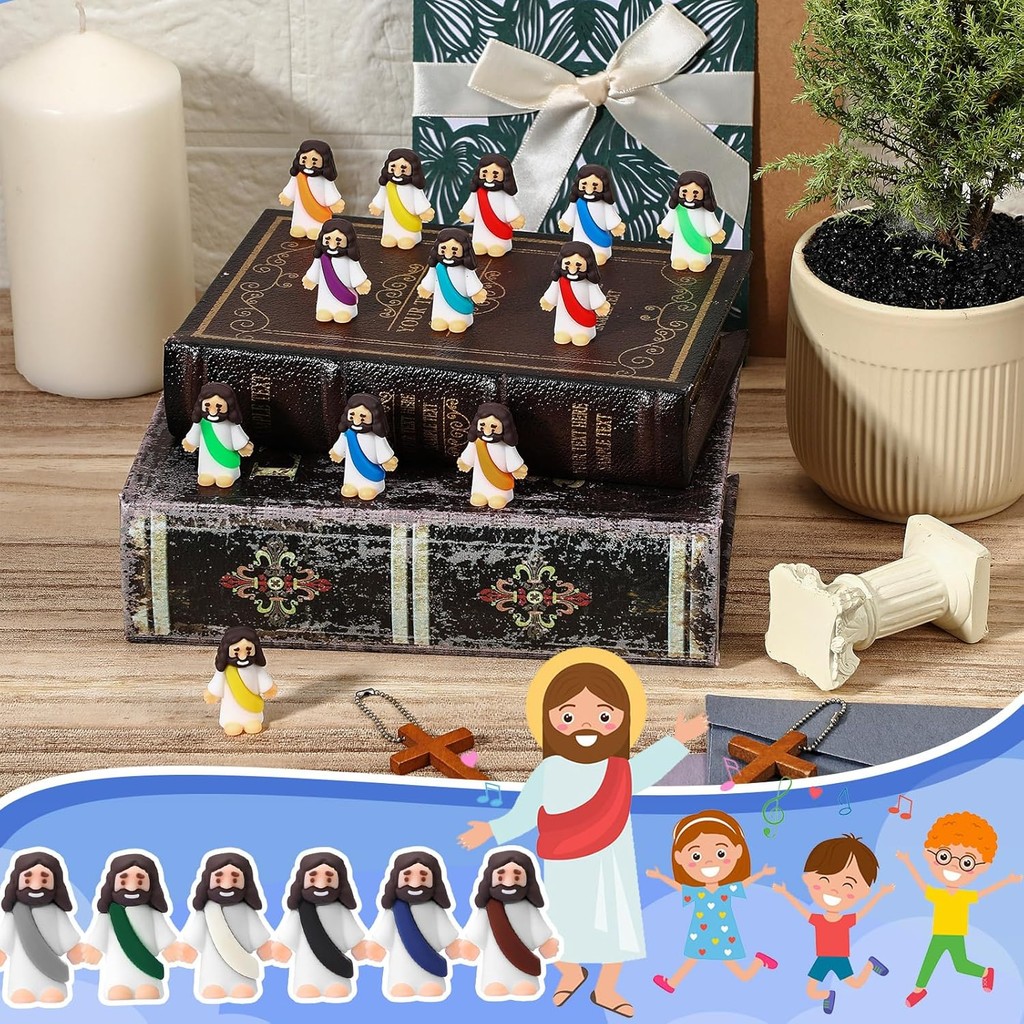 12 Pcs Little Jesus Figures Original Mini Jesus Figures Rubber Pocket Jesus Toys to Hide and Seek Religious Party Favors Sunday School Baptism Gifts