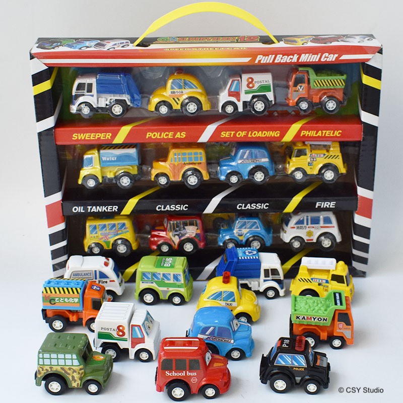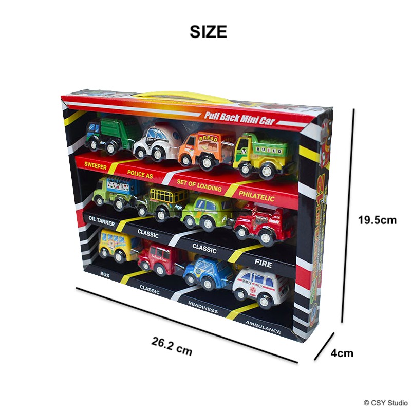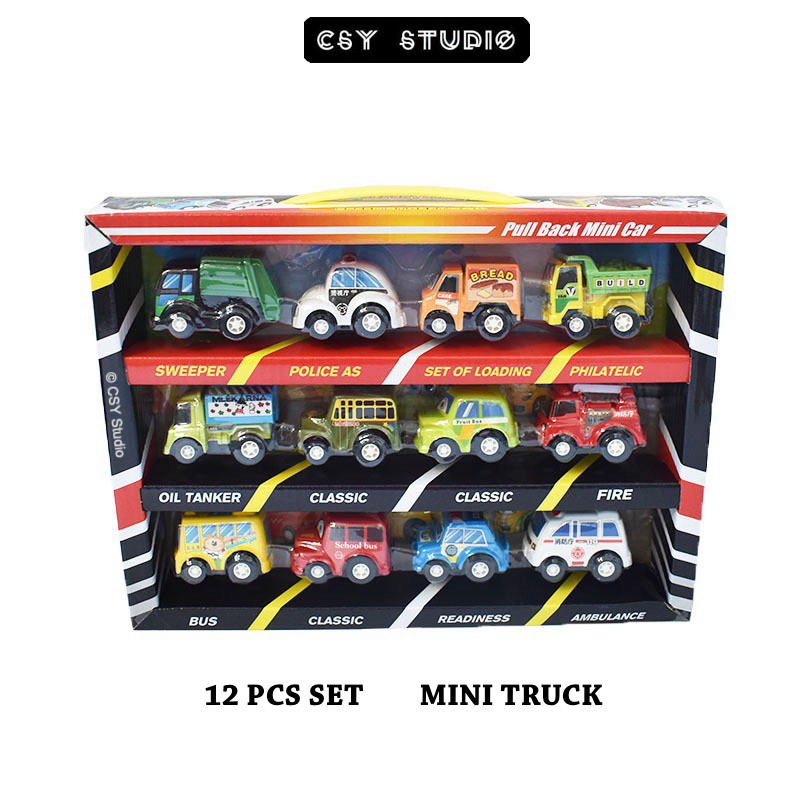 12 Pcs Set Mini Truck Mini Car Bus Taxi Fire Truck Bomba Construction Toys Kereta Mainan Kecil Kereta Kecil