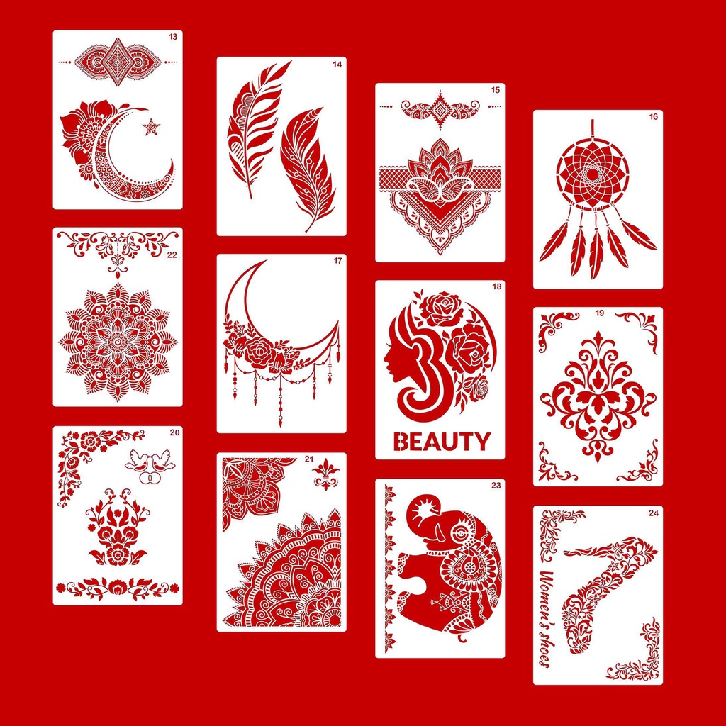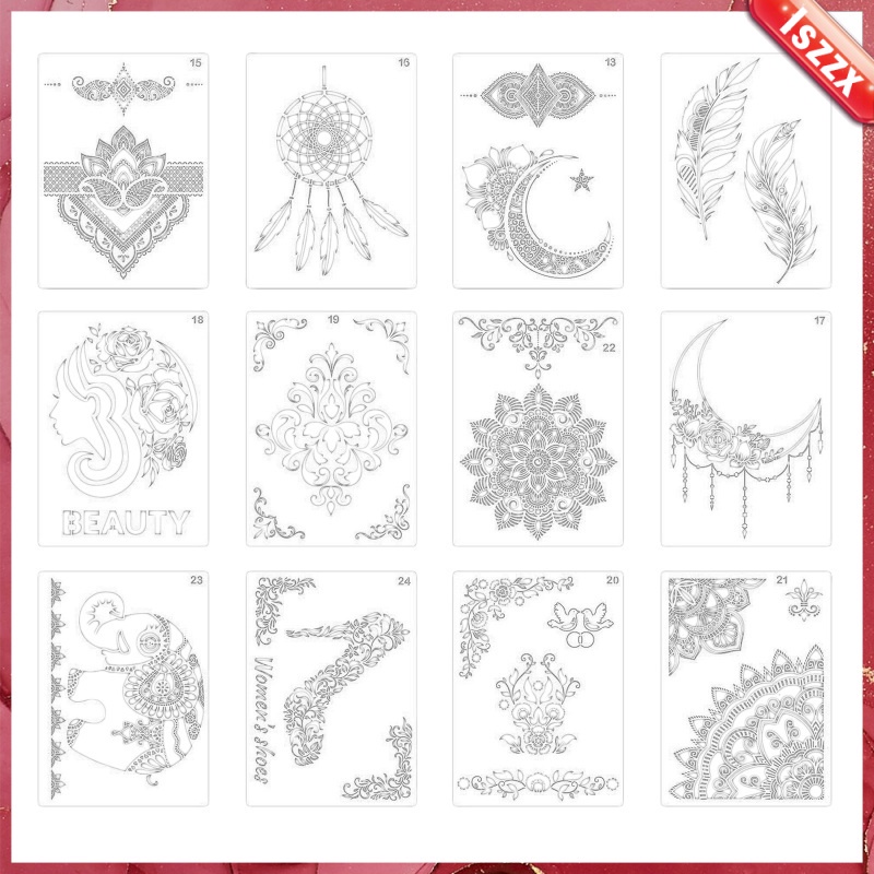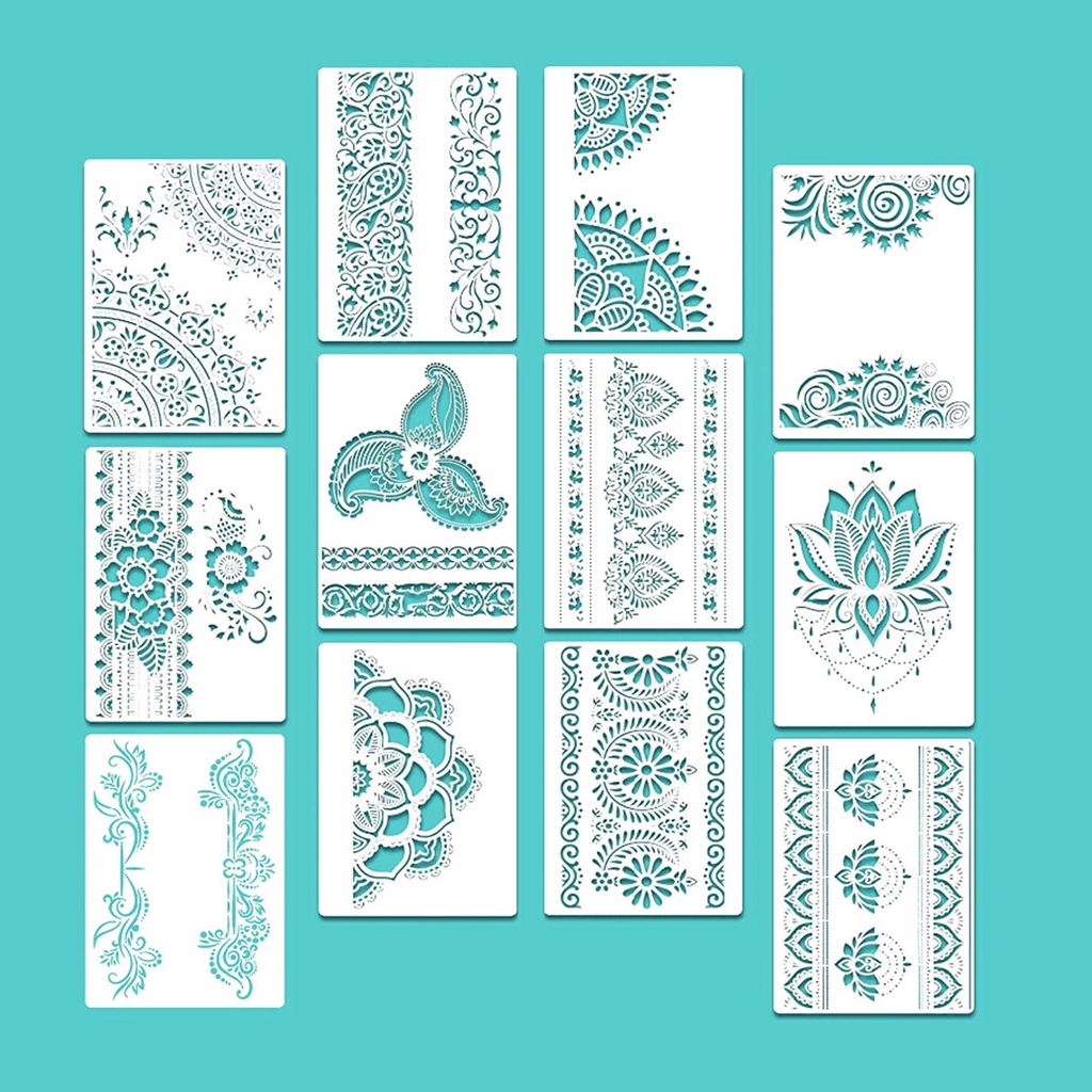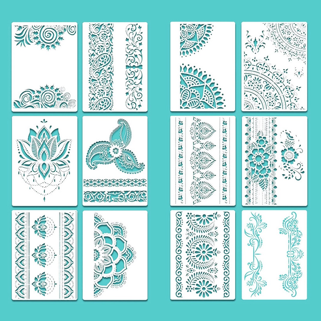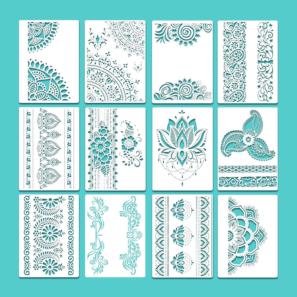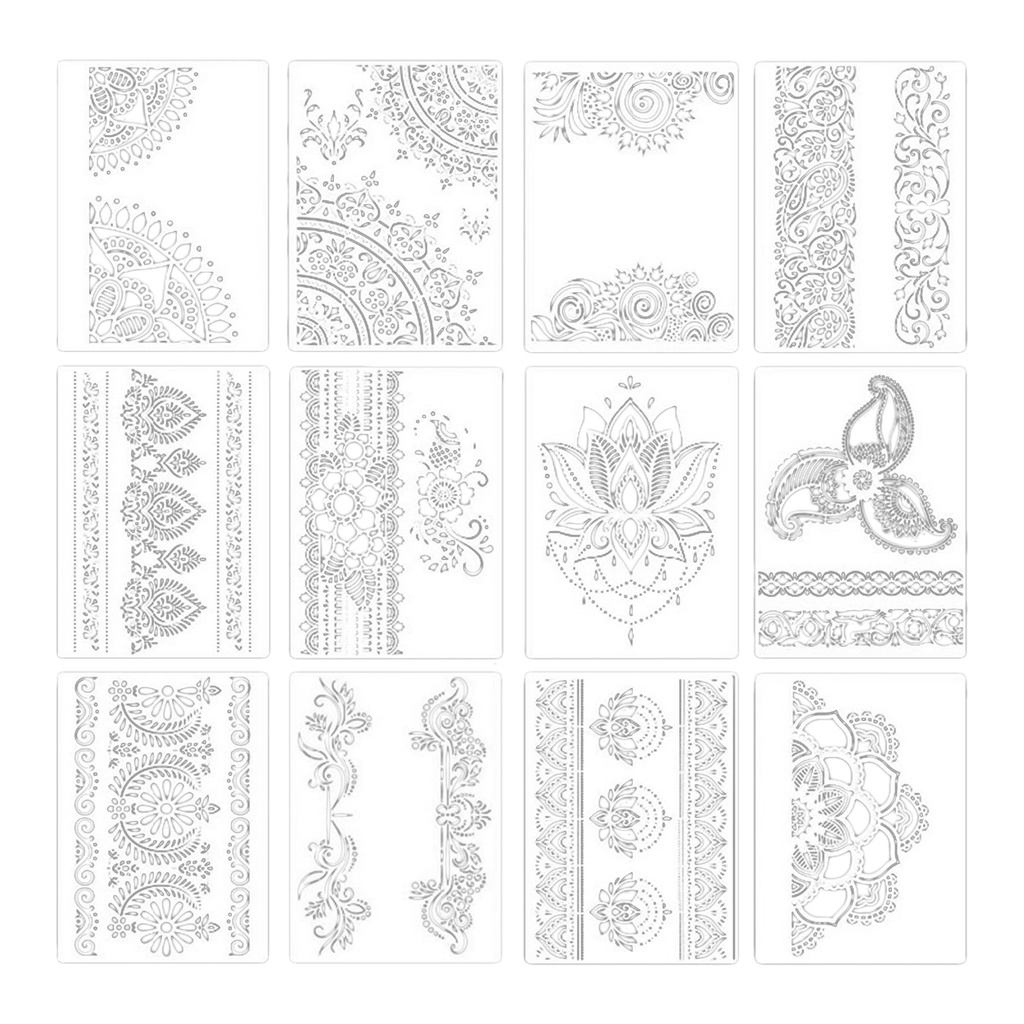 12 Pieces Large Mandala Stencil Reusable Mandala Painting Templates Floral Design Stencil Mandala Drawing Craft Stencil for DIY Wall, Tile, Furniture