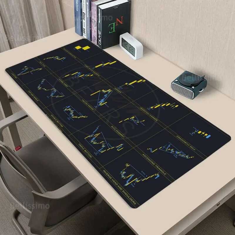 1200x600x4mm Large Keyboard Pad Trading Chart Pattern Mouse Pad Desktop Pc Accessories All Size Edgelock Rubber Desk Mat XXL
