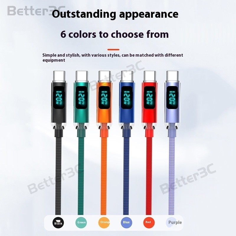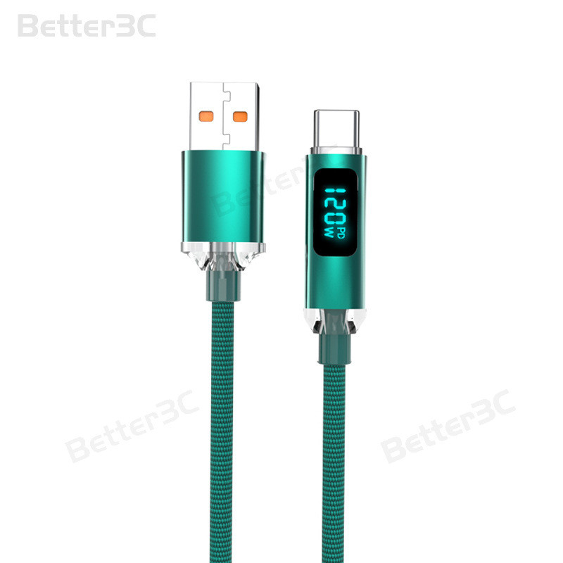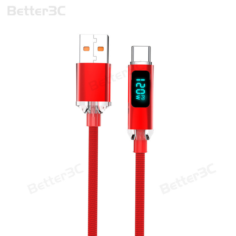 120W Digital display usb/type c to type c cable 6A super fast charging type c charger adpter Cable Anti bending Nylon weave data cable for PC Laptop ios15/16