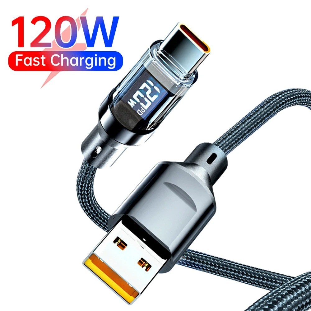 120W USB Type C Digital Display Fast Charging Cable For Huawei 6A USB C To USB C Data Cord