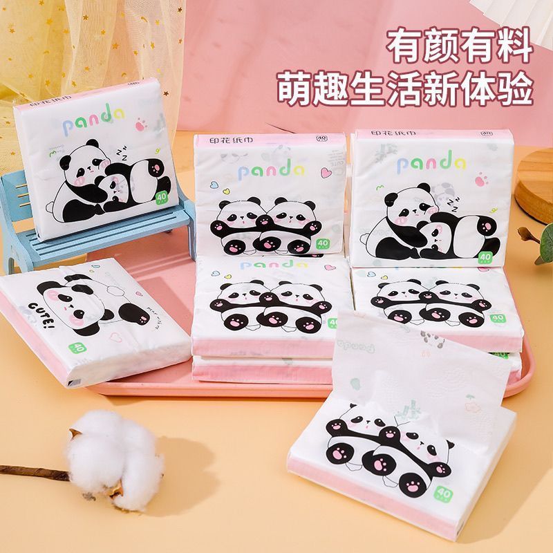 120pcs Panda Series Cartoon Printed Pocket Tissue / Watermark Pocket Tissue / Soft Facial Tissue 40-Pulls