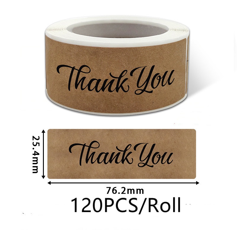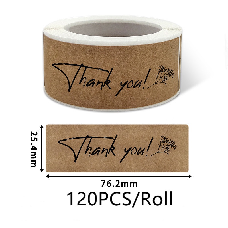 120pcs/roll Rectangle Craft Thank You Stickers Handmade Sticker Seal Labels Thank You for Your Order