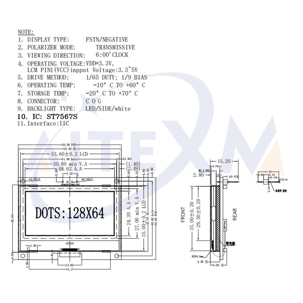 12864 IIC LCD Module 128X64 I2C ST7567S COG Graphic Display Screen Board LCM Panel 128x64 Dot Matrix Screen for Arduino