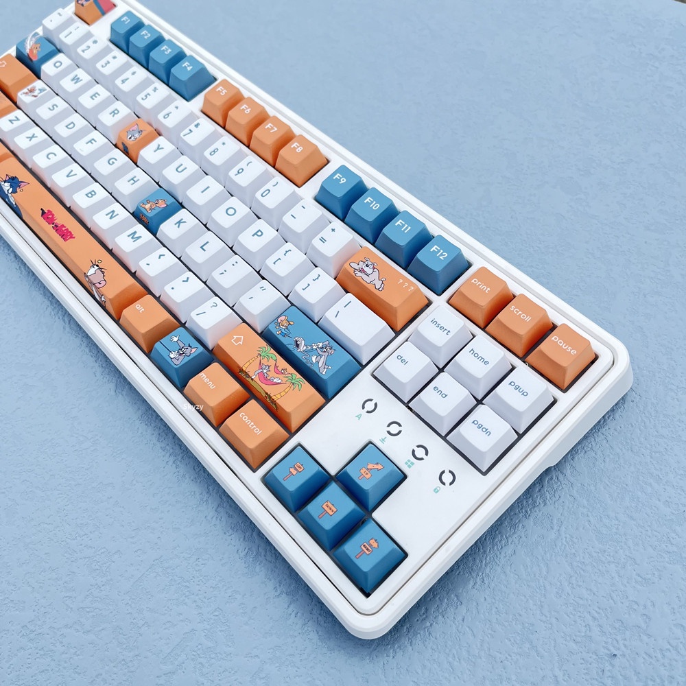 129 Keys Tom and Jerry Keycaps Cherry Profile Cartoon Anime PBT Dye Sub Mechanical Keyboard Keycap Set