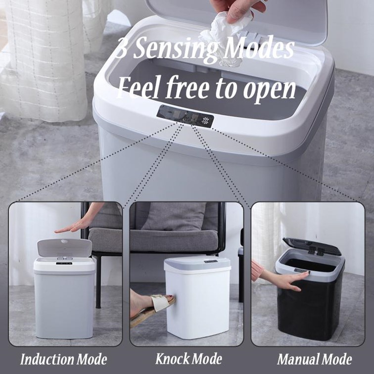 12L Dustbin Automatic Touchless Intelligent Induction Motion Sensor Dustbin Trash (Free rechargeable battery)