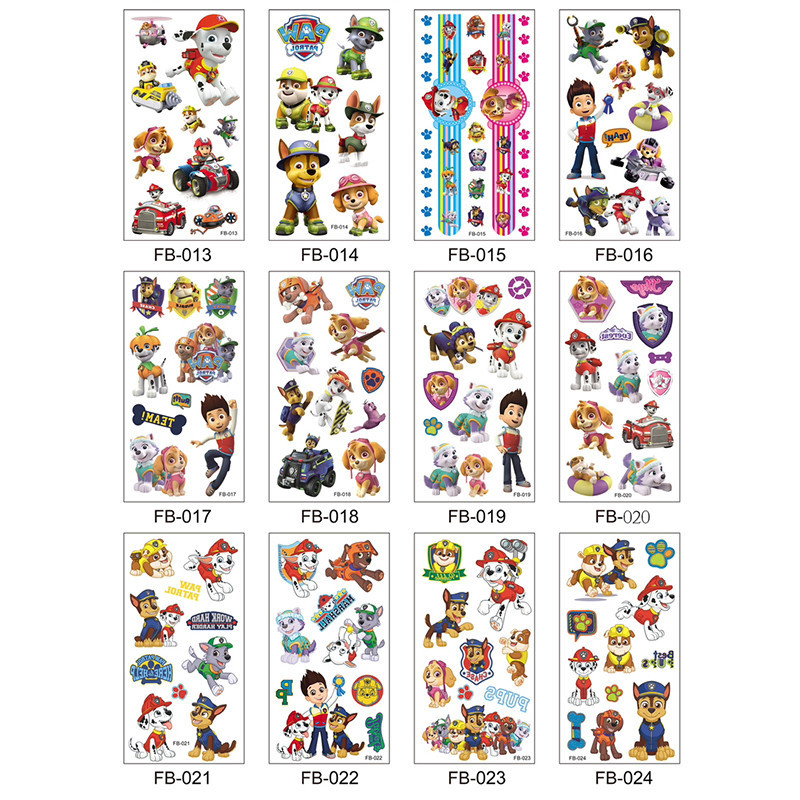 12Pcs Paw Patrol Tattoo Stickers Waterproof Sunscreen Cute Stickers Cartoon Animation Adult/Child Birthday Holiday Party Gift