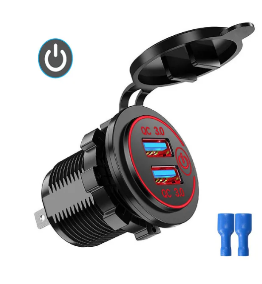 12V/24V Quick Charge Dual USB Ports Car Charger Waterpoof Fast Charging Socket Power Outlet with LED Light for Motorcycle Car Charge