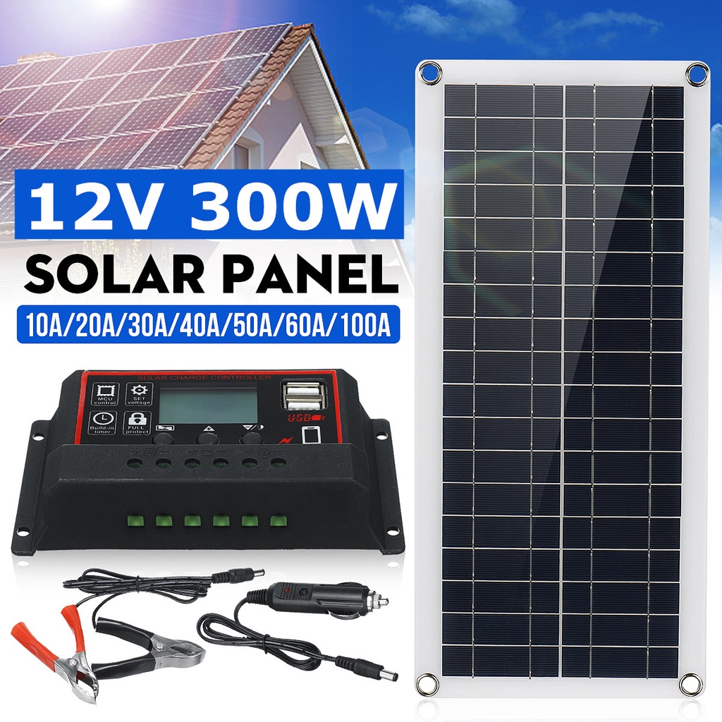 12V 300W Solar Panel Kit USB charging Solar Cell Board Controller Portable Waterproof Solar Cells for Phone RV Car MP3 PAD
