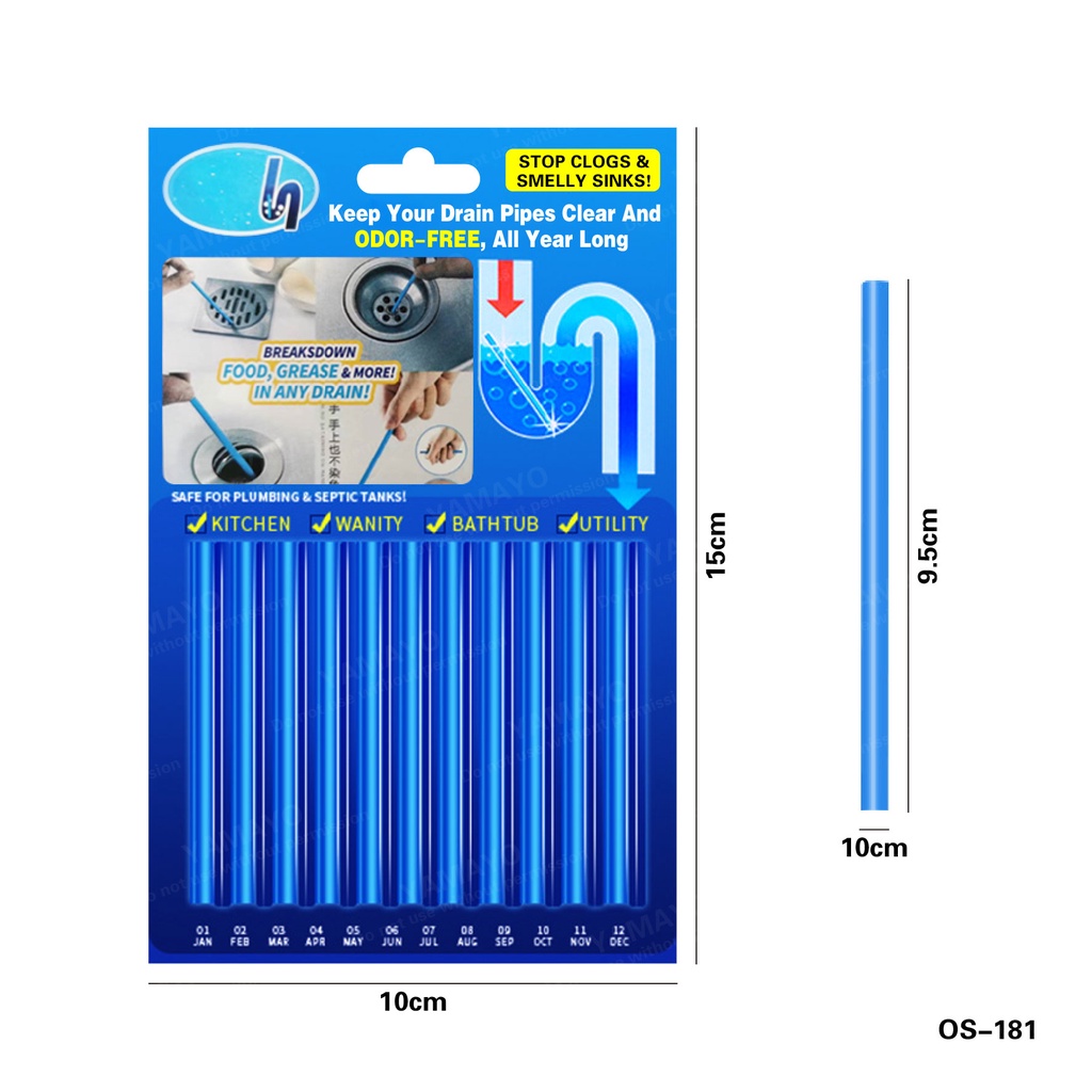 12pcs Cleaning Sani Sticks || Drain Sink Clog Pipes Dredging || Odour Free Deodorizer for Kitchen Toilet Sewer Bathroom