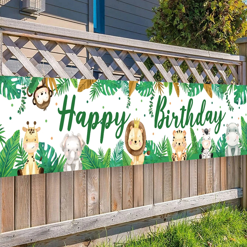 13*70 Inch Happy Birthday Banner Jungle Animal Backdrop for Kids Safari Theme Party Decorations Birthday Baby Shower Party Needs