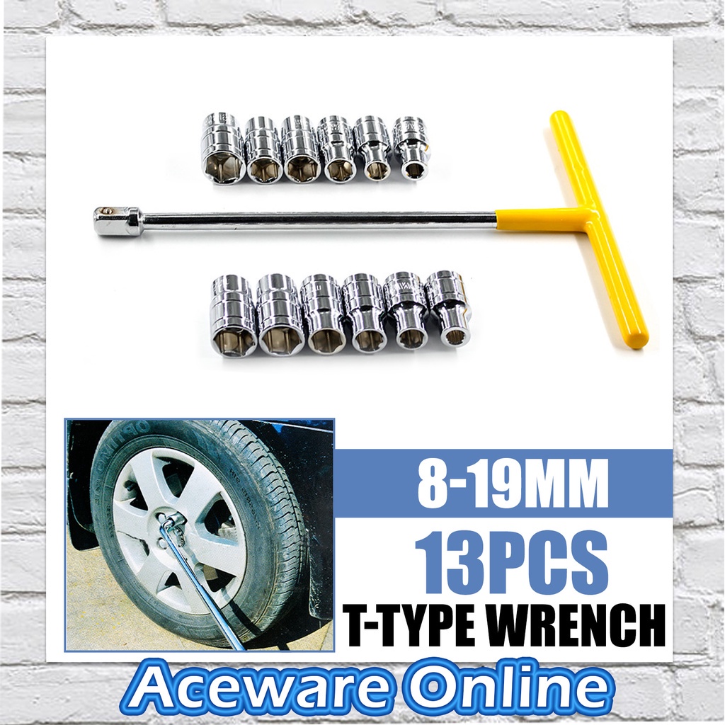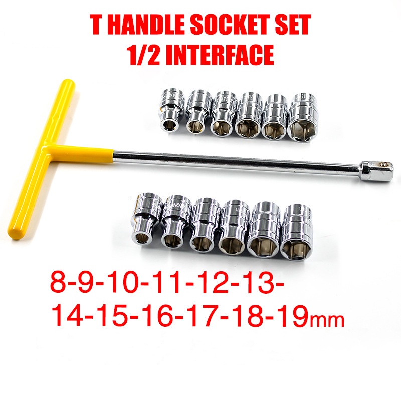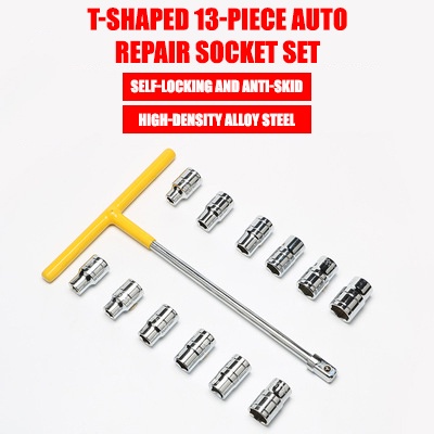 13 In 1 T Handle Box Socket Car 8-19mm Wrench Adapter Set 1/2 Inch Hex Bit Socket Set for Motorcycle Repair Tools 13pcs