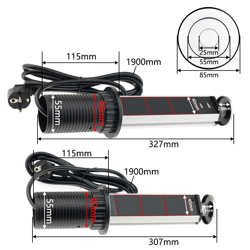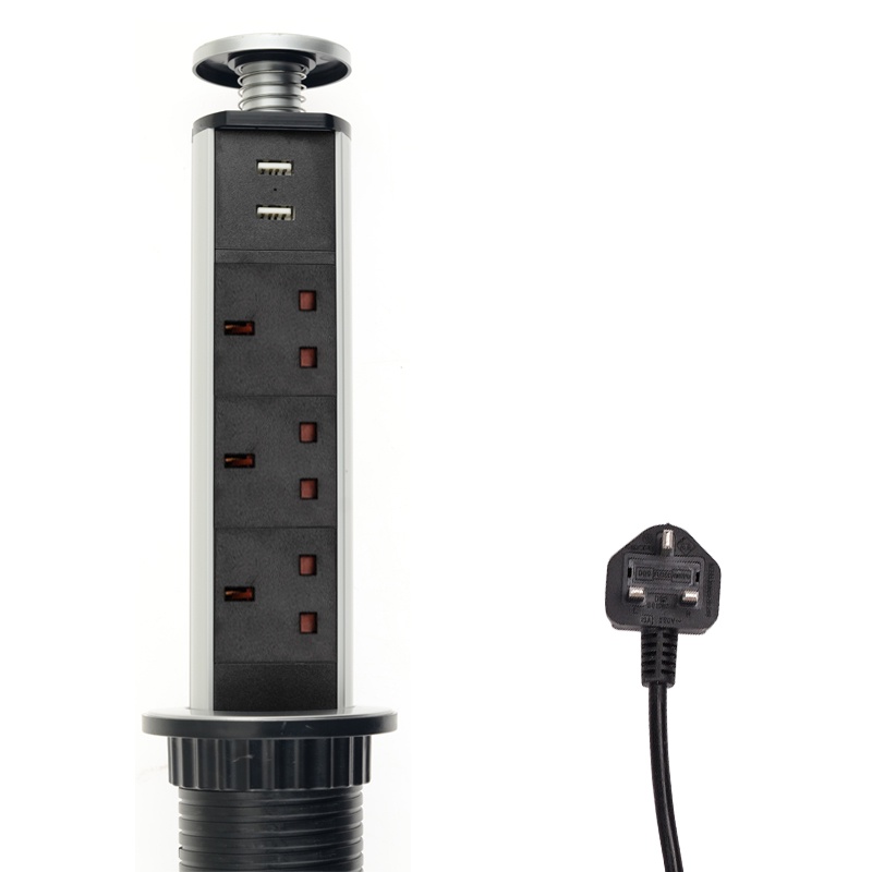 13A Power Socket With USB PULL Pop Up Retractable Socket Hidden Desktop Socket Table Outlet Kitchen Island Meeting Room Office