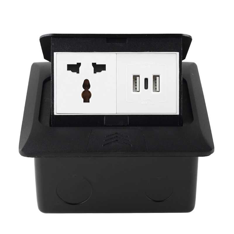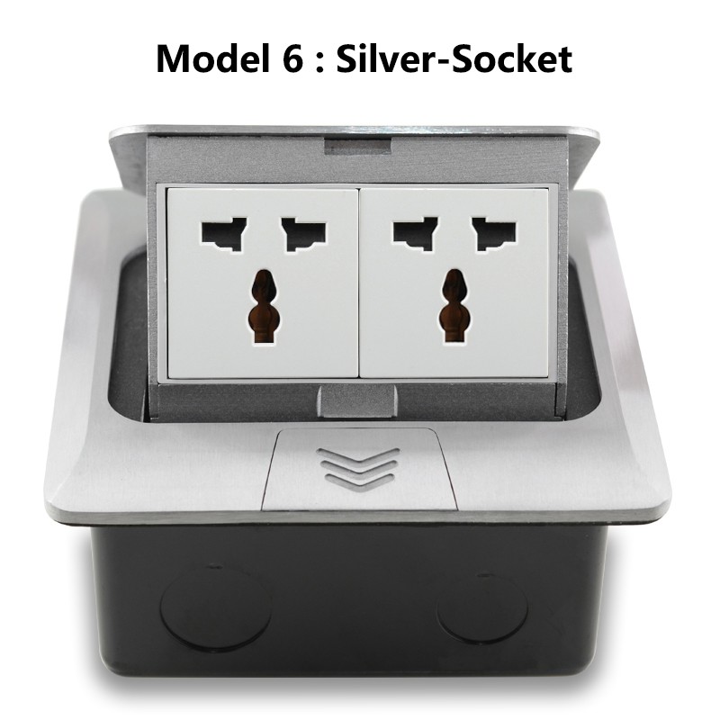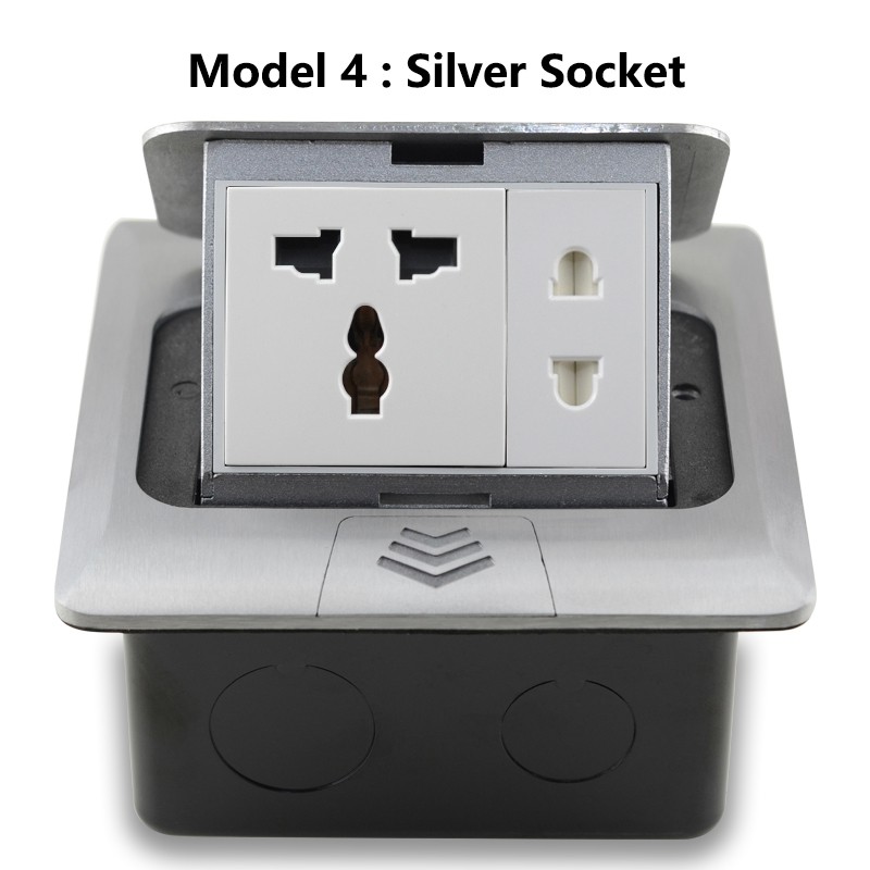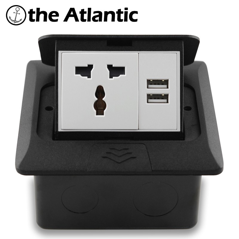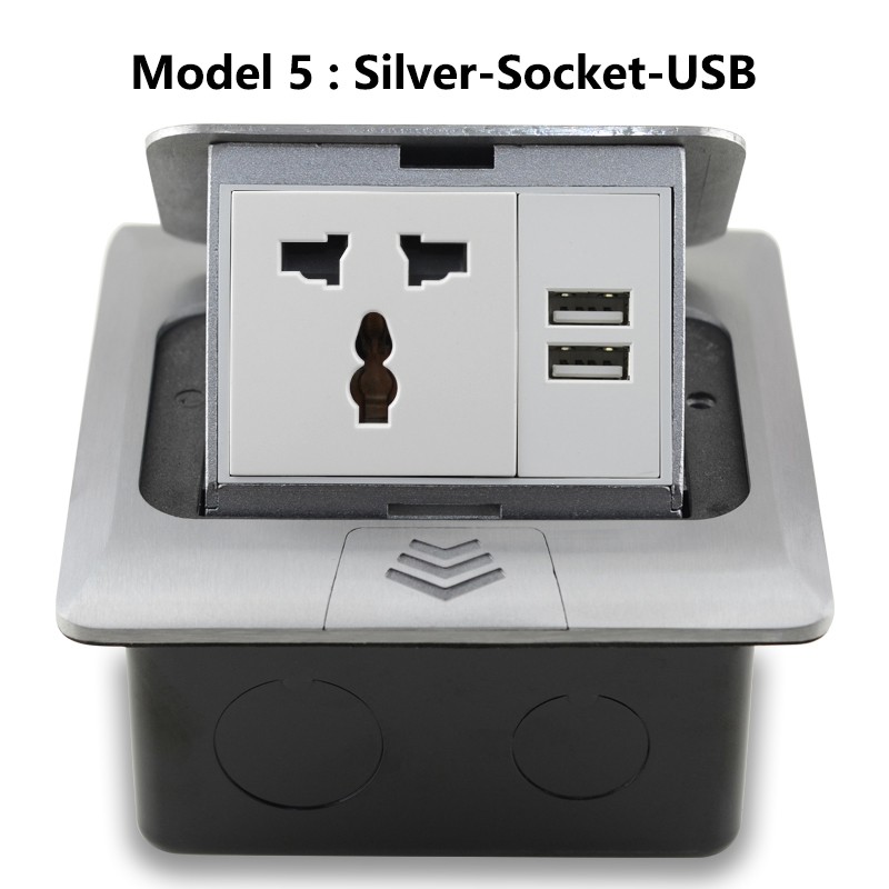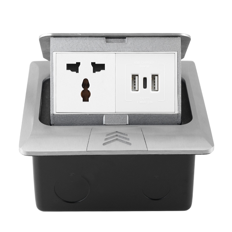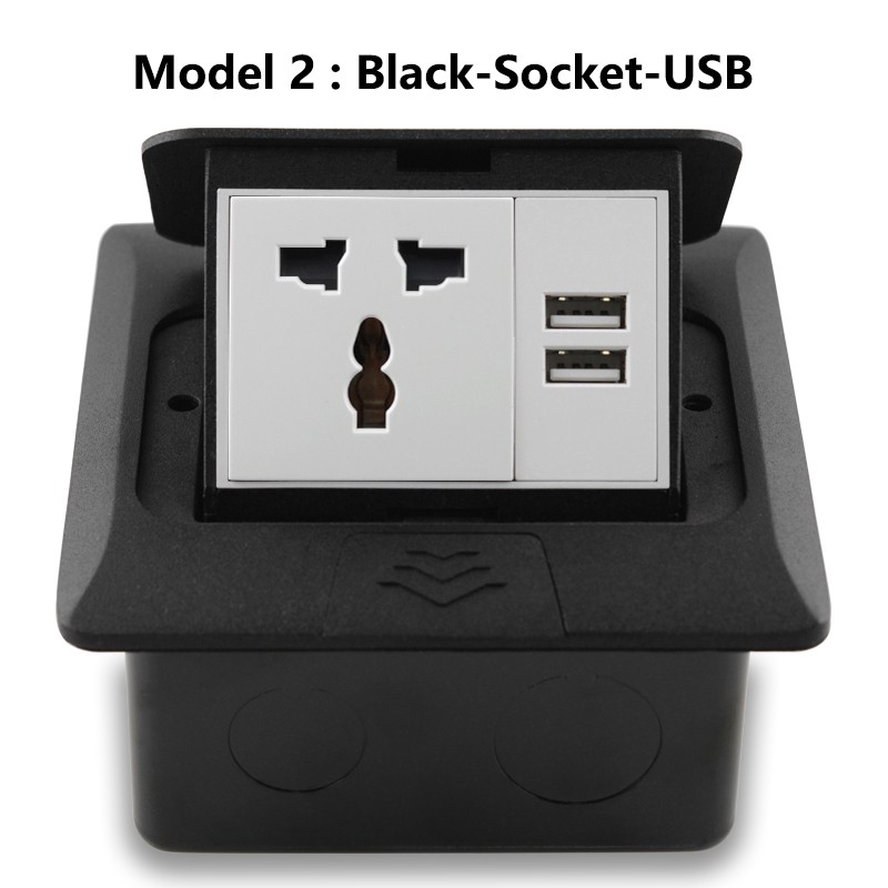 13A Universal Socket 2 Pin 3 Hole With USB Charging Port Pop-Up Floor Socket 2 Way Power Outlet Aluminum Alloy Office UK