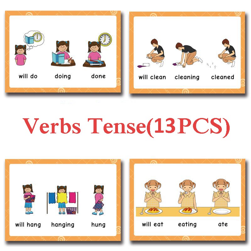13Pcs Verb Tense Flash Card Baby Lean English Word Pocket Cards Educational Toys Smart Reading Pen