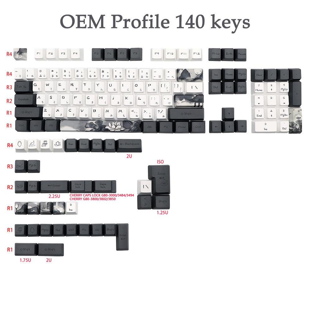 140 Keys Ink Lotus Flowers Keycap OEM Profile PBT Dye Sublimation Mechanical Keyboard Keycaps For MX Switches 61/64/68/87/104